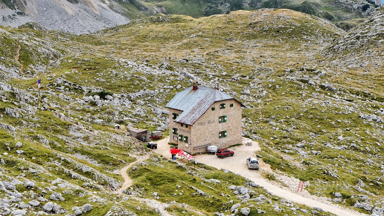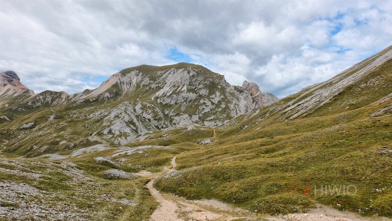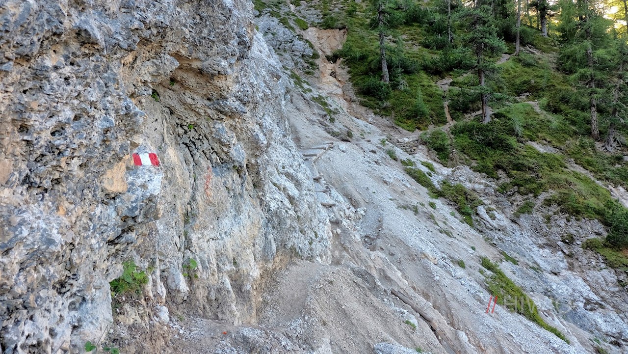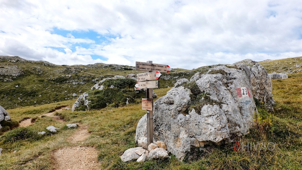 Am beliebten Schutzhaus zweigt der zunächst breite Güterweg Nr. 23 ab. Zu Füßen der imposanten Südwand des wuchtigen Seekofel und der Senneskarspitze führt er nahezu eben durch die aussichtsreiche Bergwelt.