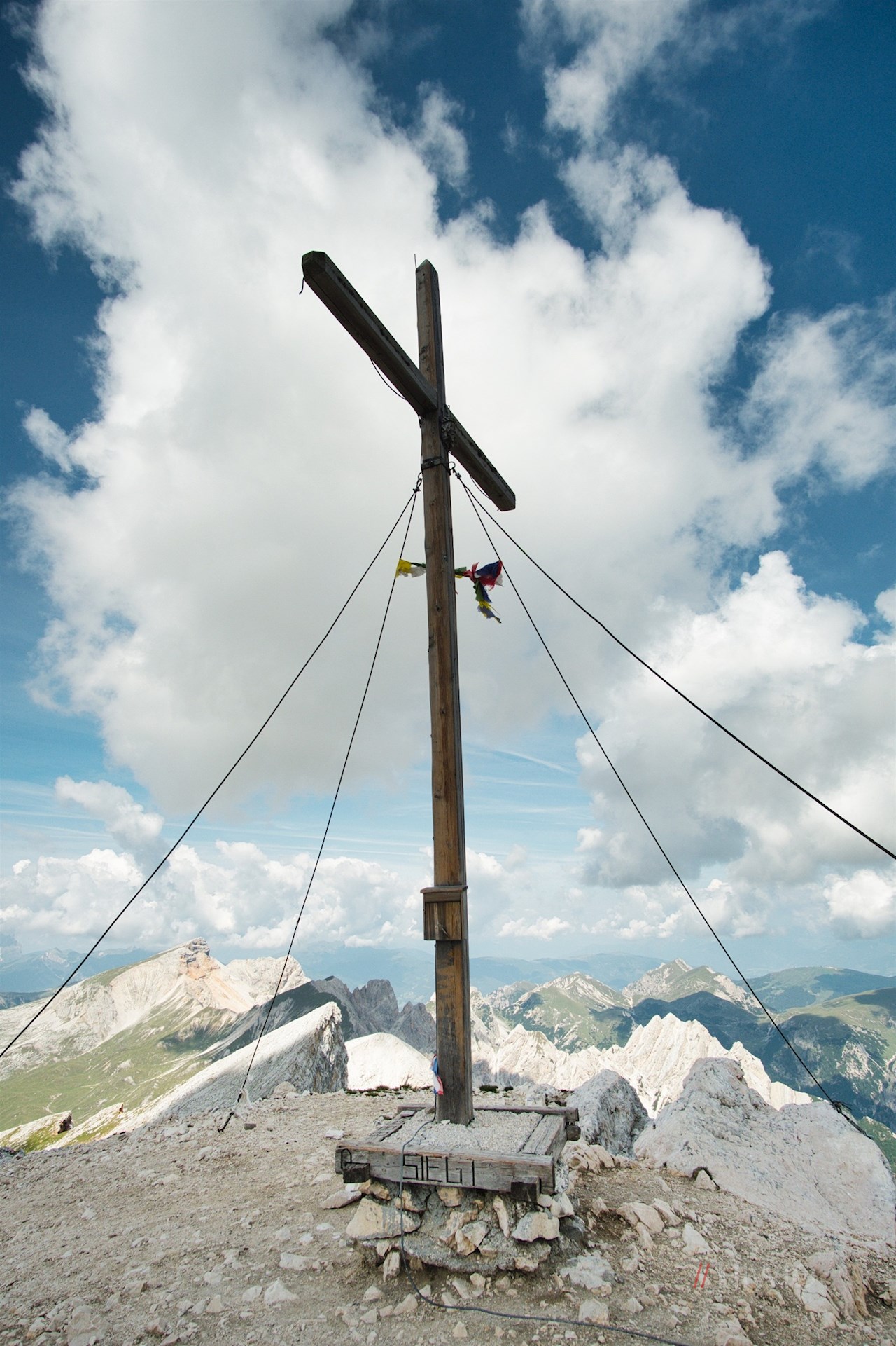 Erschließt sich bereits während des Anstiegs ein atemberaubender Ausblick, eröffnet sich auf dem 2.810 m hohen Gipfel ein im wahrsten Sinne des Wortes schwindelerregend schöner Ausblick: Während sich zu unseren Füßen der türkis schimmernde Pragser Wildsee in seiner ganzen Schönheit offenbart, erhebt sich um uns herum ein wahrer Gipfelreigen. So lassen sich etwa im Osten die weltbekannten Drei Zinnen, im Süden die Lavarella und die Marmolada, im Westen der Puez und der Peitlerkofel und im Norden die Rieserferner Gruppe und die imposanten Dreitausender der Zillertaler Alpen ausmachen.