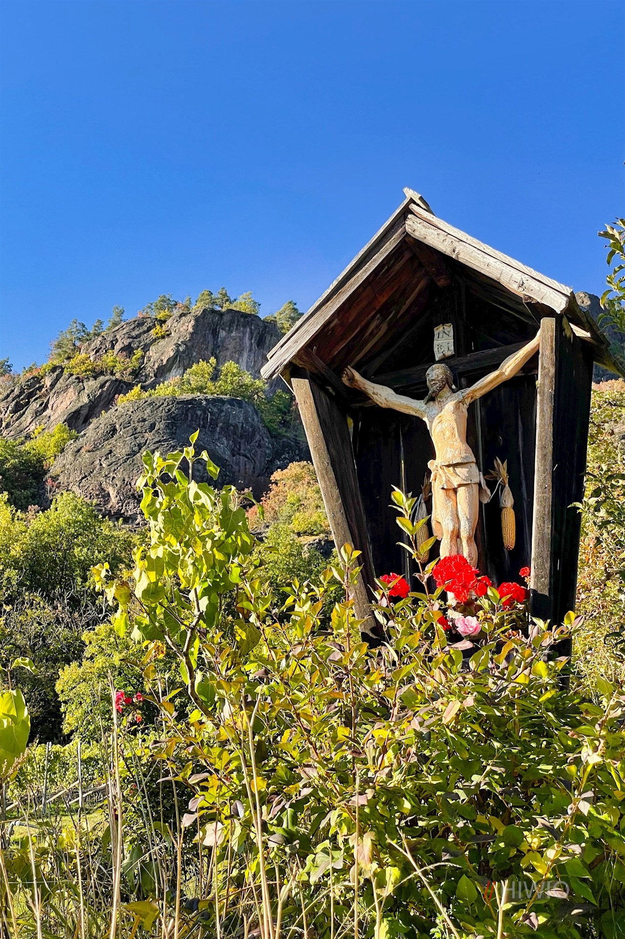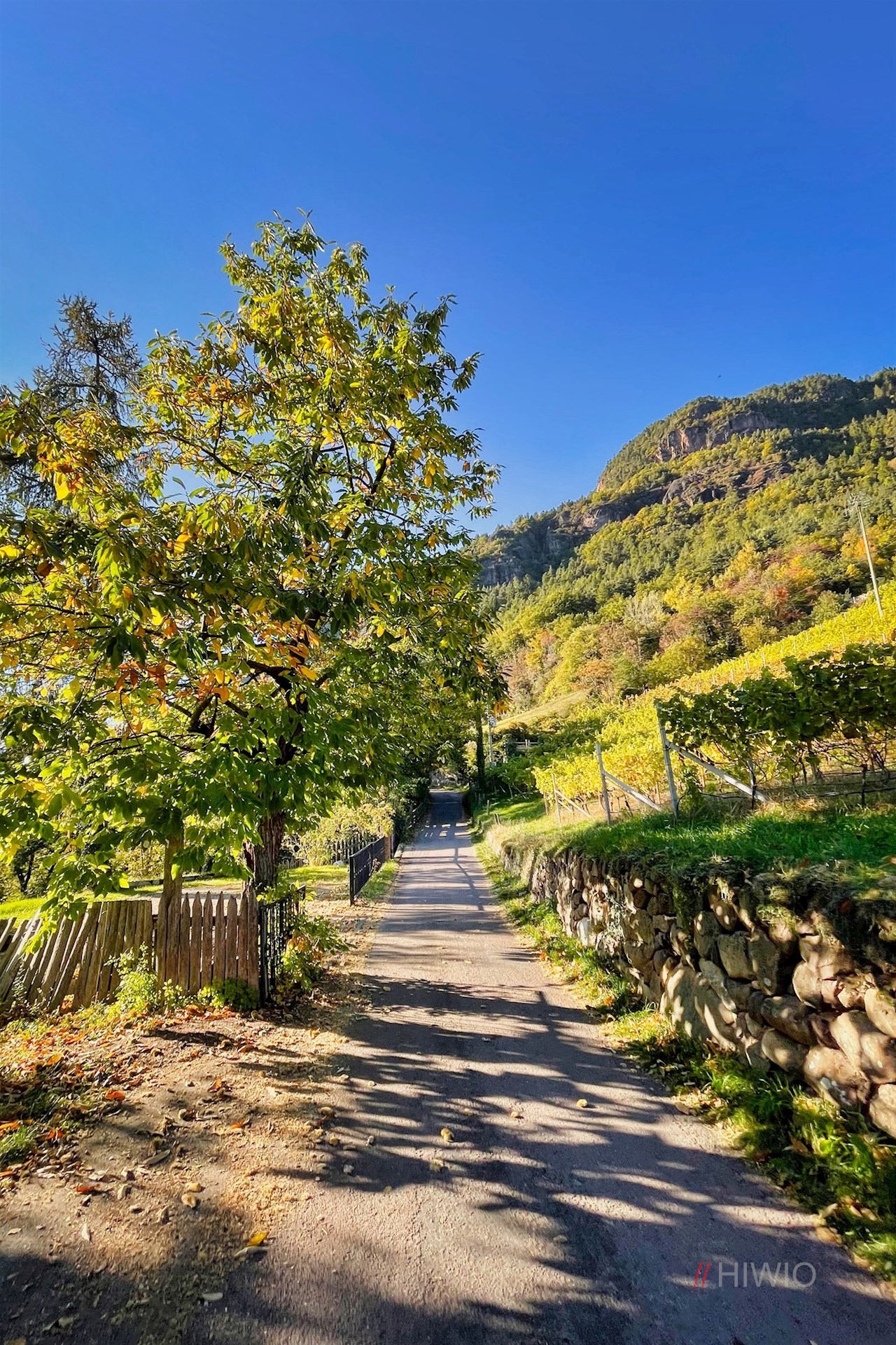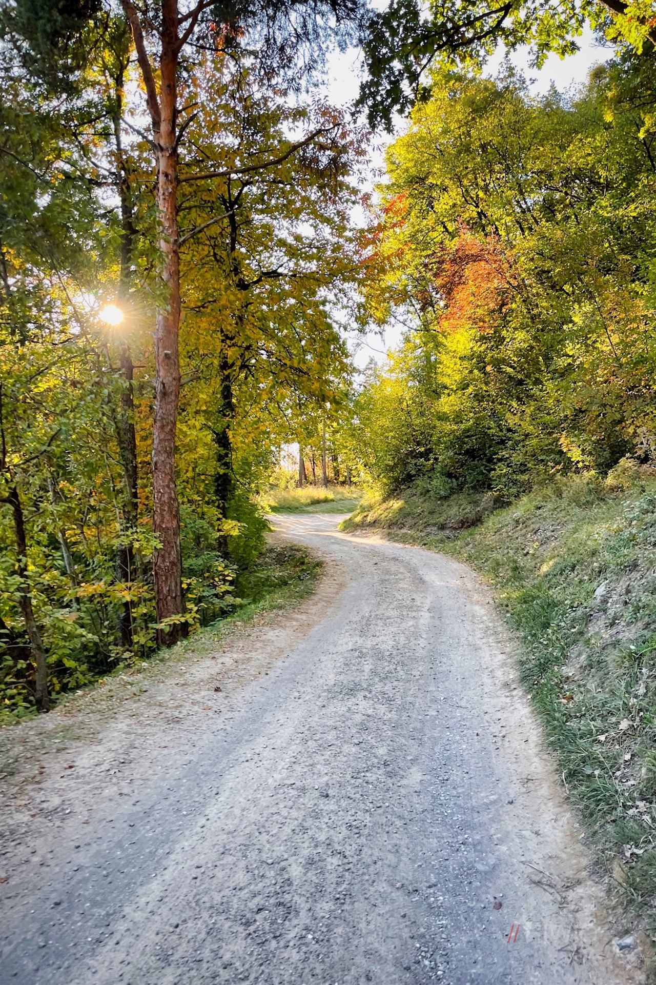 Auf der gegenüberliegenden Straßenseite zweigt der breite Wanderweg Nr. 31 in Richtung Signat ab. Er zieht sich ohne nennenswerte Höhenunterschiede durch Weinberge, Wiesen und lichte Haine, die im Herbst in den schönsten Farben erstrahlen.