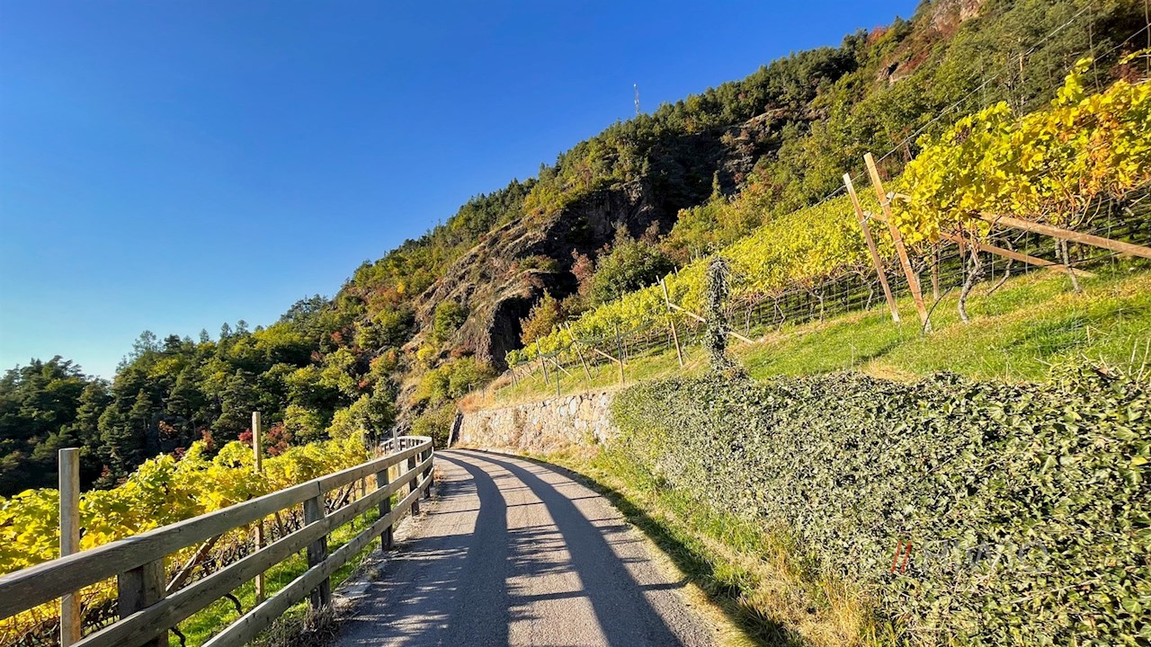 Kurz vor Signat zweigt links der Weg zum nunmehr nahen, mehrfach ausgezeichneten Patscheider Hof ab. Umrahmt von idyllischen Weinbergen lädt er wenig später vor der Kulisse des sagenumwobenen Rosengarten zur Einkehr: In der rund 300 Jahre alten Bauernstube und auf der sonnenverwöhnten Panoramaterrasse werden den Gästen von 12:00 bis 18:00 Uhr (Stand 2021) hausgemachte regionale Gaumenfreuden und erlesene Weine aus teils eigenem Anbau serviert.