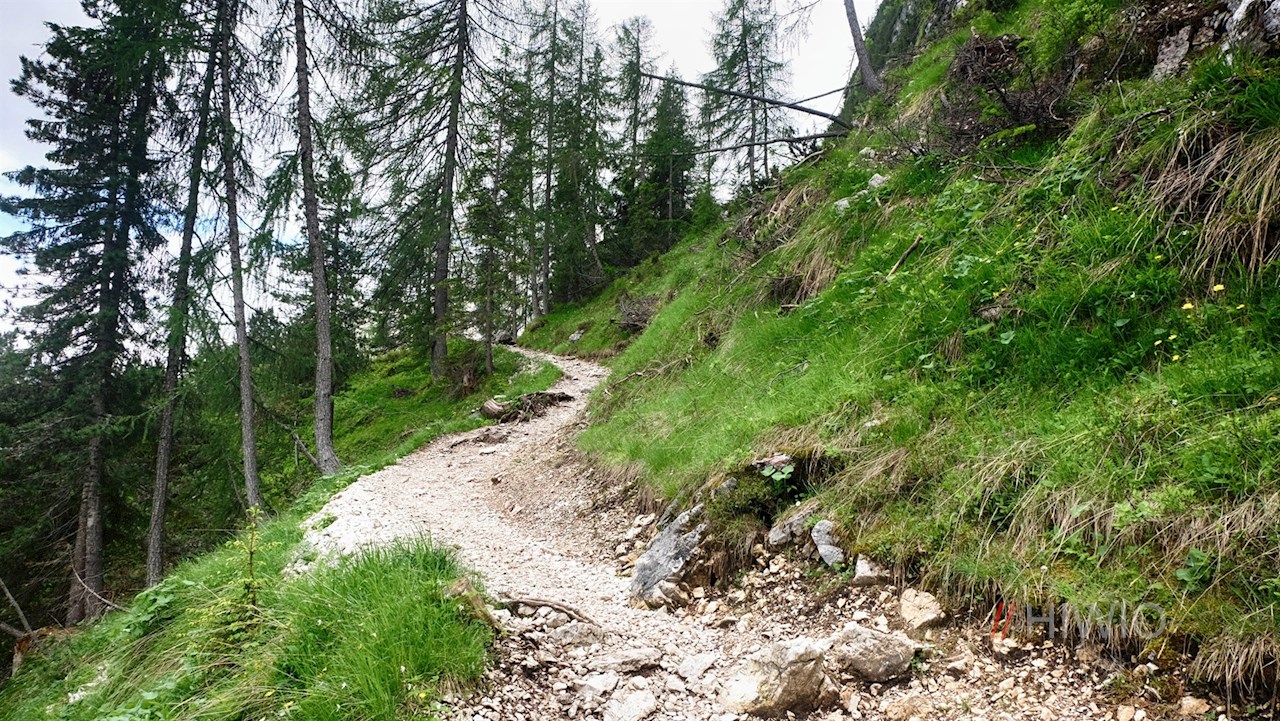 Schließlich lichtet sich der Wald. Nun wird der bislang recht breite Weg allmählich schmaler, holpriger und etwas steiler, dafür aber landschaftlich interessanter: So schweift der Blick über dichte, tiefgrüne Wälder auf die gegenüberliegenden, hochaufragenden Felswände. Selbst die markanten Zacken der weltberühmten Drei Zinnen lassen sich in der Ferne ausmachen.