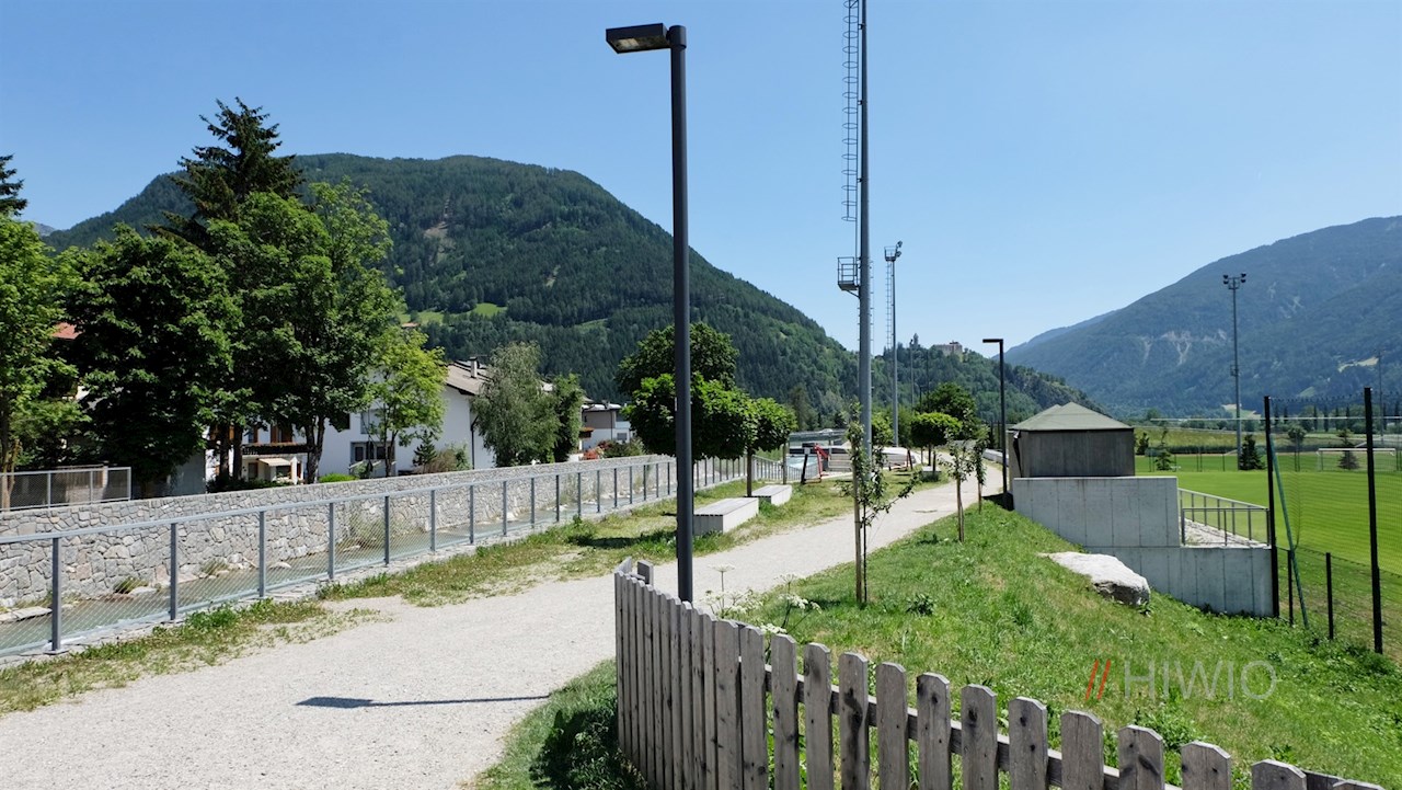 Der Bachdammweg nimmt hinter den Sportanlagen am Südende der Stadt Sterzing seinen Anfang, die zahlreiche Parkmöglichkeiten bereithalten.