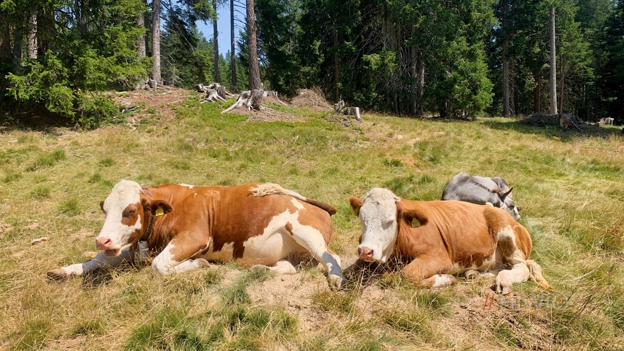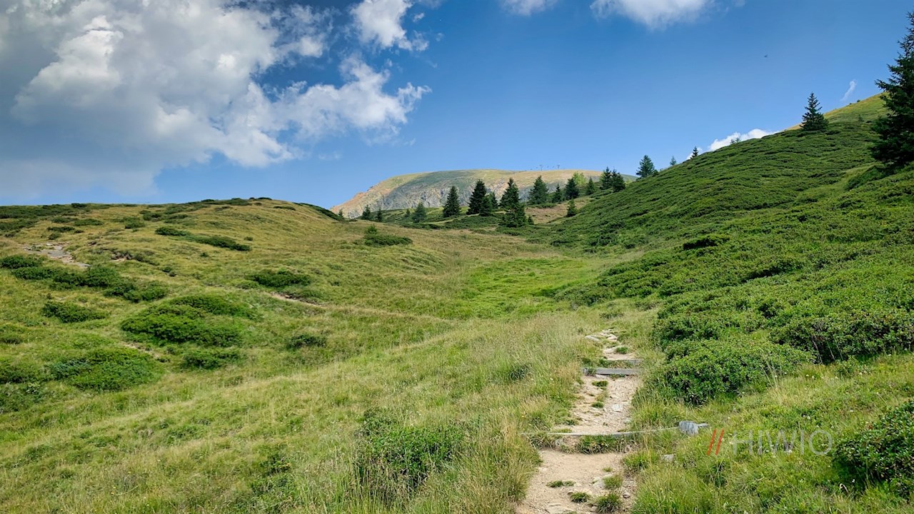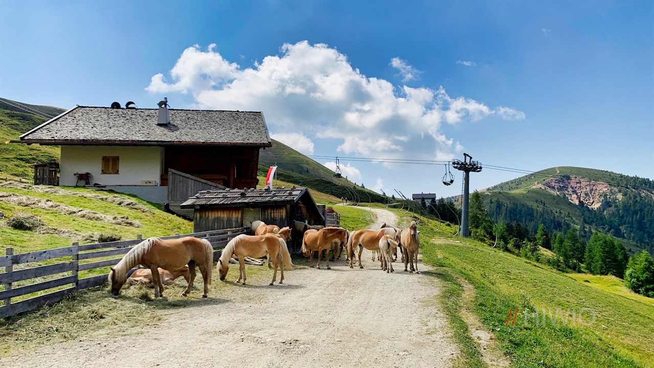 Nacheinander den Wegnummern 3 und 18A folgend, fällt der sanfte Wanderweg zu gleich drei beliebten, nahe beieinander liegenden Almhütten ab, die zur ersten Zwischenrast verlocken: die Waidmannalm, die Kirchsteiger Alm und die Meraner Hütte.