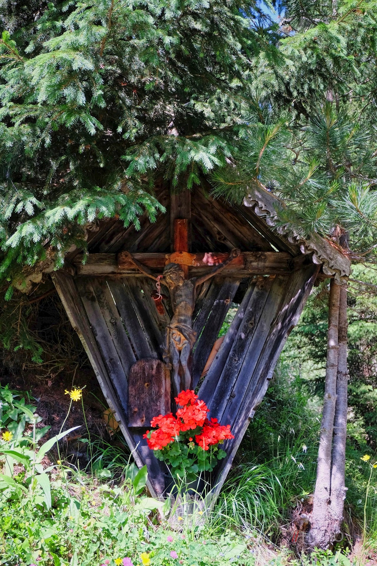 Die Spisser Alm ist eine kleine Almhütte am Plosehang, zu der eine kurze, kinderwagentaugliche Wanderung führt.