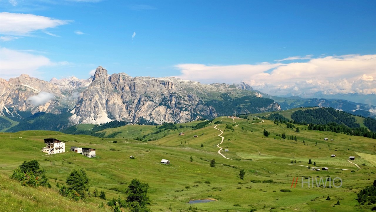 Weiterhin der Wegnummer 22 in Richtung Pralongia folgend, setzt sich die Wanderung im großenteils sanften Anstieg durch die sanfte, mit malerischen Holzscheunen geschmückte Almlandschaft fort.