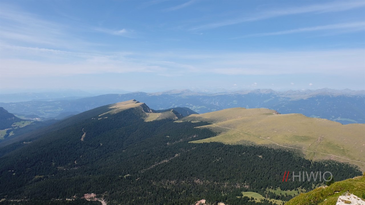 Genießt man bereits während des Anstiegs malerische Ausblicke, entfaltet sich auf dem kreuzgeschmückten Gipfel ein unvergessliches Panorama: Insbesondere der markante Schlern, das Langkofelmassiv, der nahe Monte Pic, der wuchtige Sellastock und die nahen Geisler stechen ins Auge. Wer Letztere aus nächster Nähe bestaunen und zugleich ins idyllische Villnösstal hinabblicken möchte, sollte noch den kurzen, nahezu eben verlaufenden Weg zur Panascharte einschlagen.