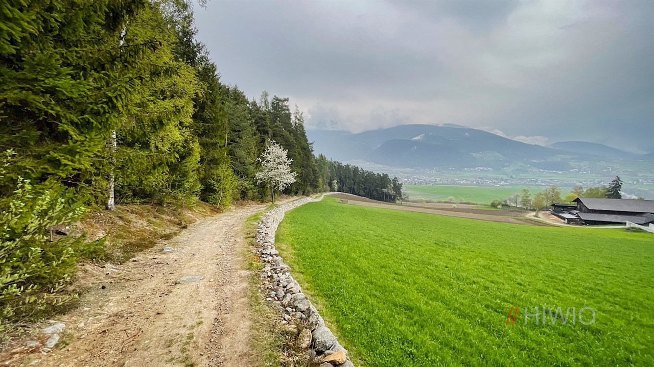 Der Wegnummer 17A in Richtung Pfalzen folgend, führt die Wanderung zunächst zum westlichen Dorfrand. Hier geht die Wanderung in einen sanft ansteigenden Wanderweg über, der sich durch Wald und kleine Wiesen zieht. Unterwegs öffnen sich schöne Ausblicke auf Bruneck und den dahinter aufragenden Kronplatz.