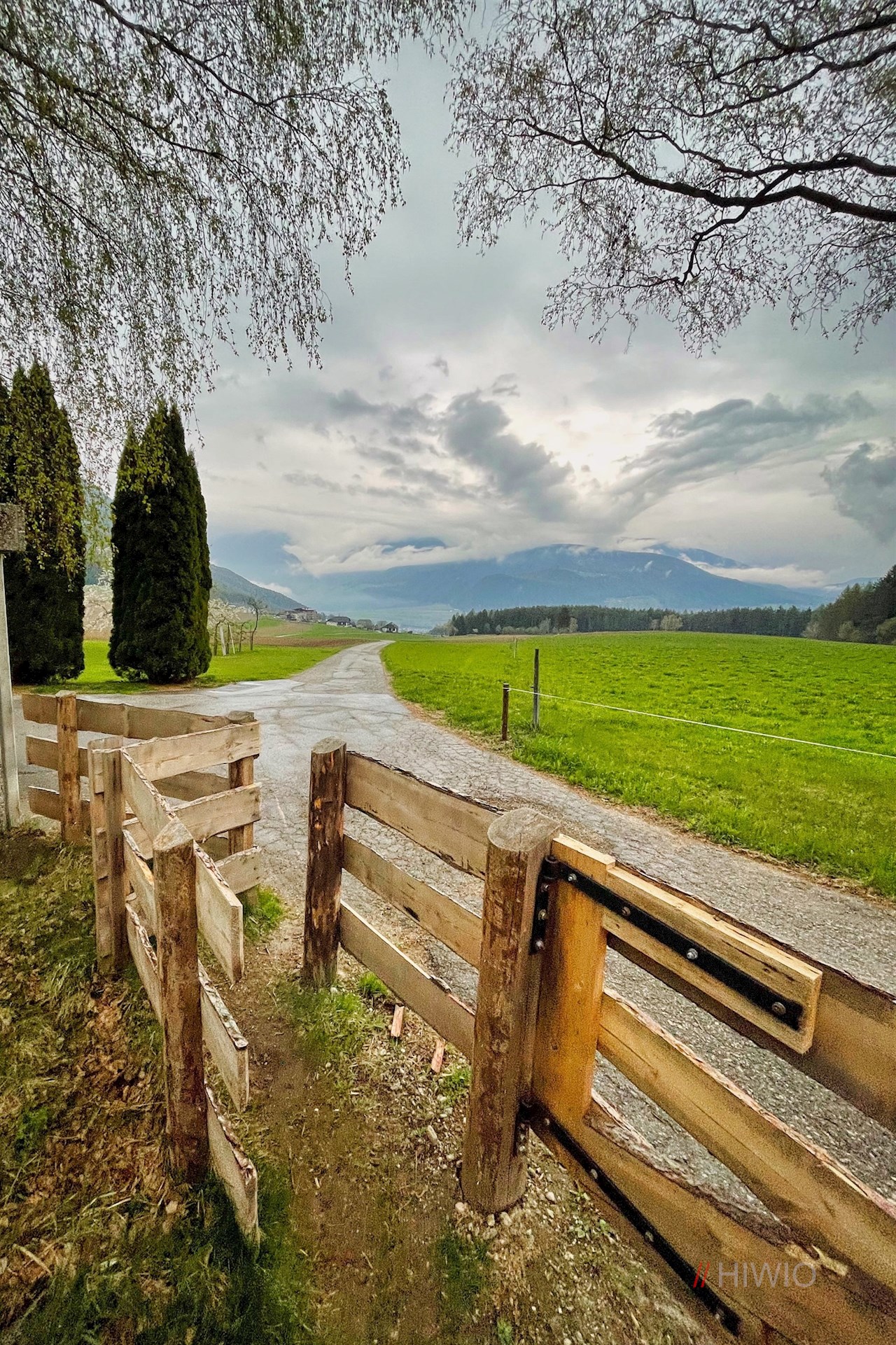 Nach etwa 50 Minuten gemütlichen Wanderns mündet der Weg erneut in ein kleines Sträßchen, das geradewegs ins sonnenverwöhnte Pfalzen führt.