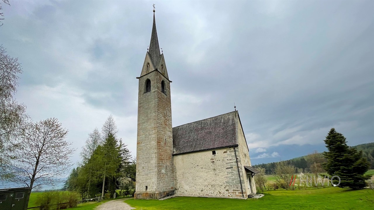 Von St. Georgen bei Bruneck zieht sich ein schöner Wanderweg durch Wiesen und Wälder nach Pfalzen. Der Rückweg führt am idyllischen Kirchlein St. Valentin vorbei.