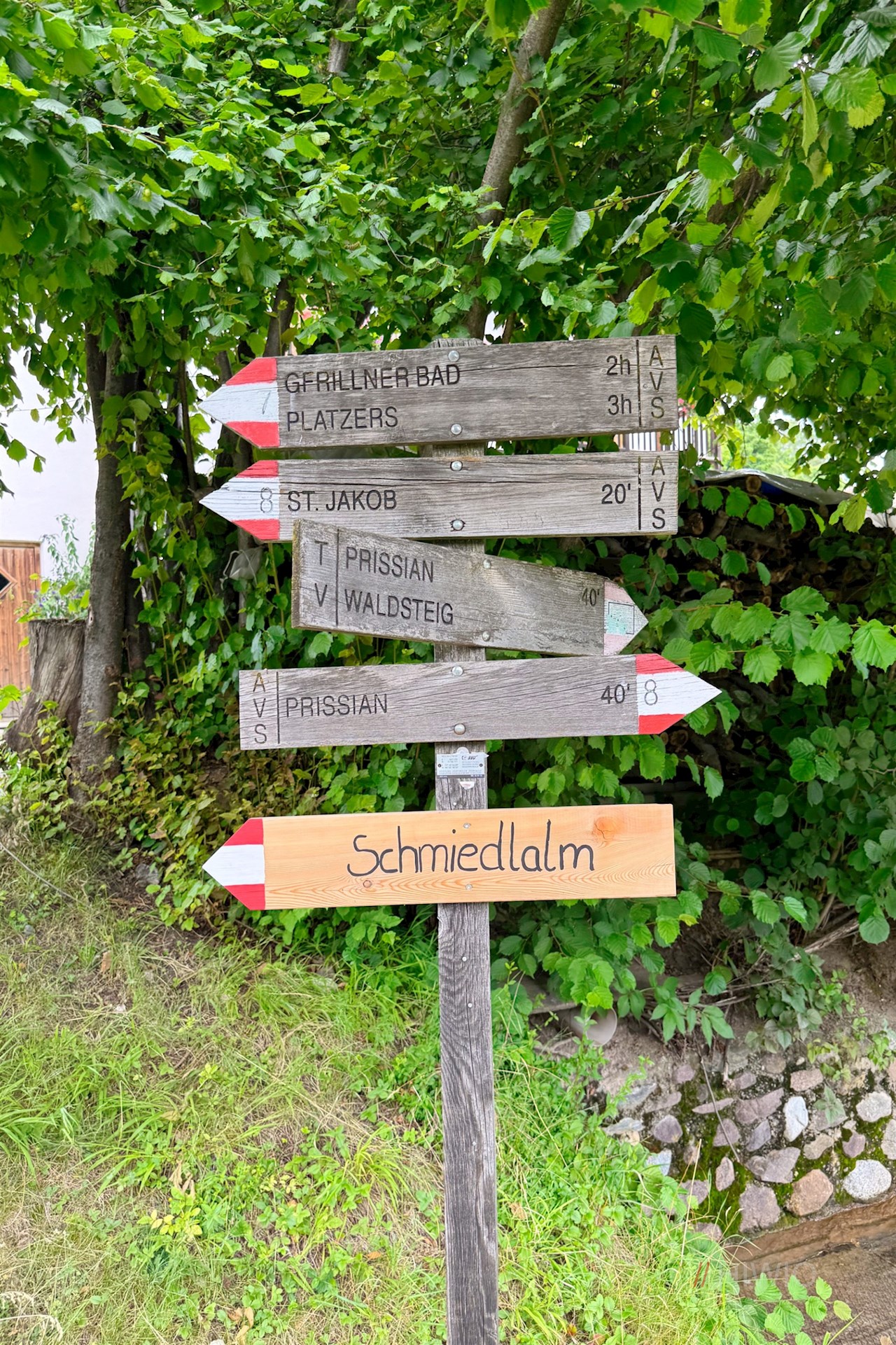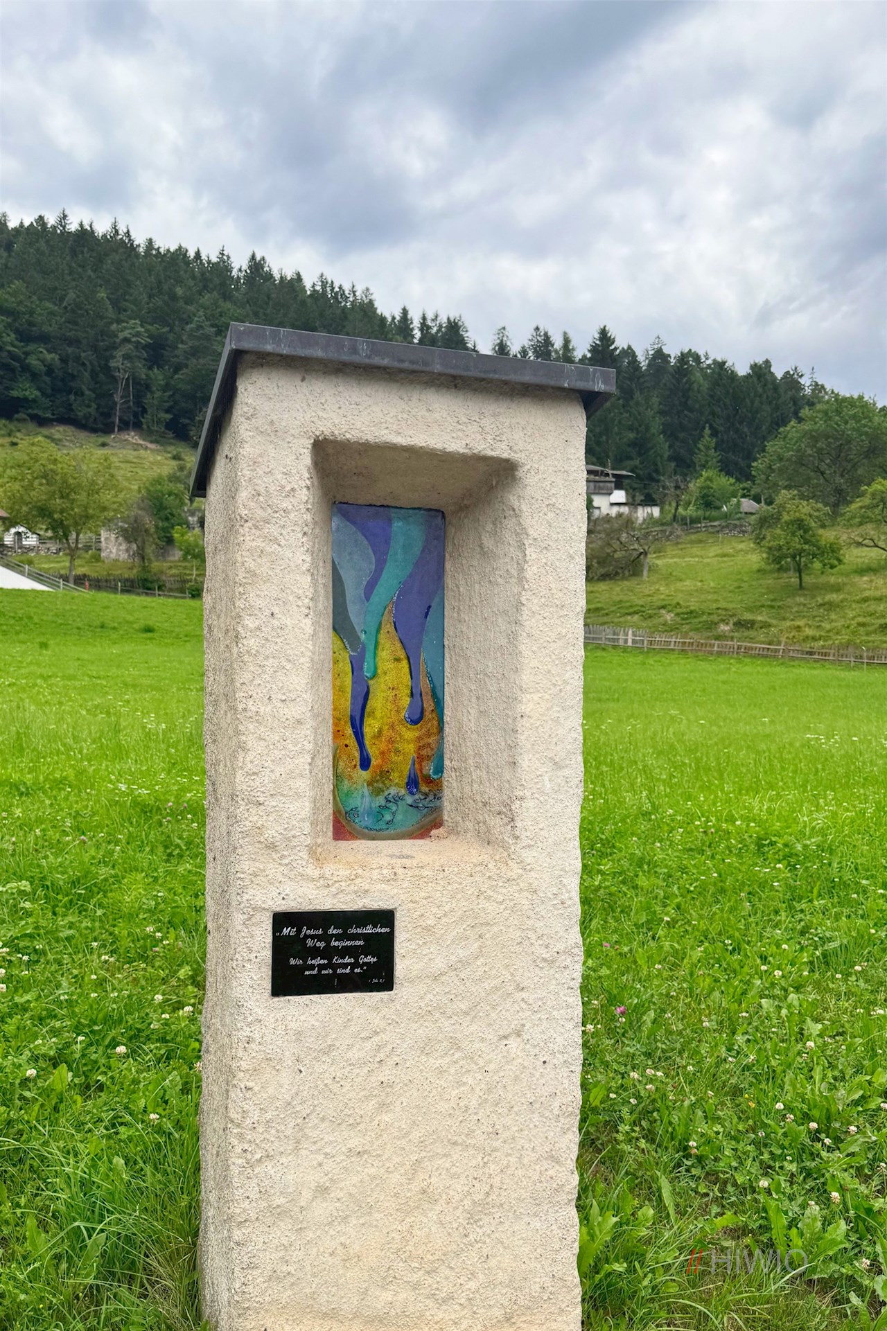 Von St. Jakob folgt man dem nach unten führenden Weg zur nächsten Weggabelung. Weiterhin der Wegnummer 8 folgend, führt die Wanderung nun auf dem breiten, von Bildstöcken gesäumten „Besinnungsweg zu den sieben Sakramenten“ ins nahe Grissian.