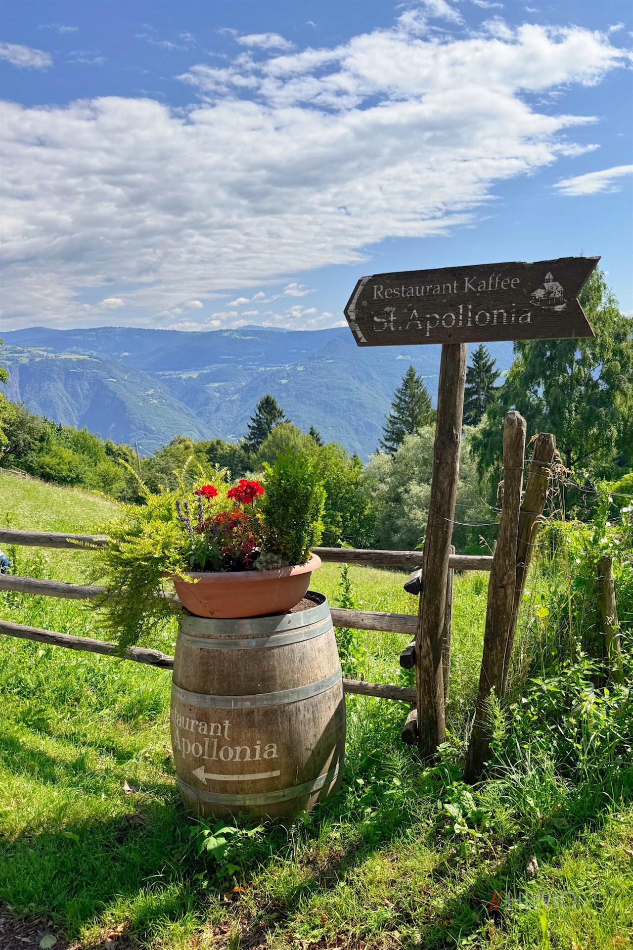 Die Wanderung nach St. Jakob beginnt auf dem Parkplatz nahe dem Gasthaus Apollonia oberhalb von Nals.