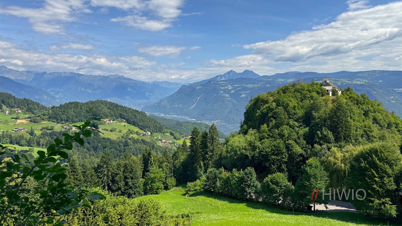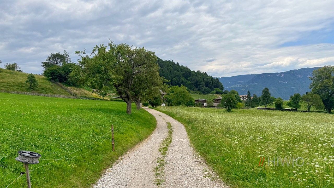 Hier zweigt der Wanderweg Nr. 10 nach Nals ab. Er führt durch schöne (Obst-)Wiesen an einem Gehöft vorbei und taucht wenig später in ein lichtes Waldstück ein, hinter dem der Wanderweg Nr. 9 nach St. Apollonia abzweigt.