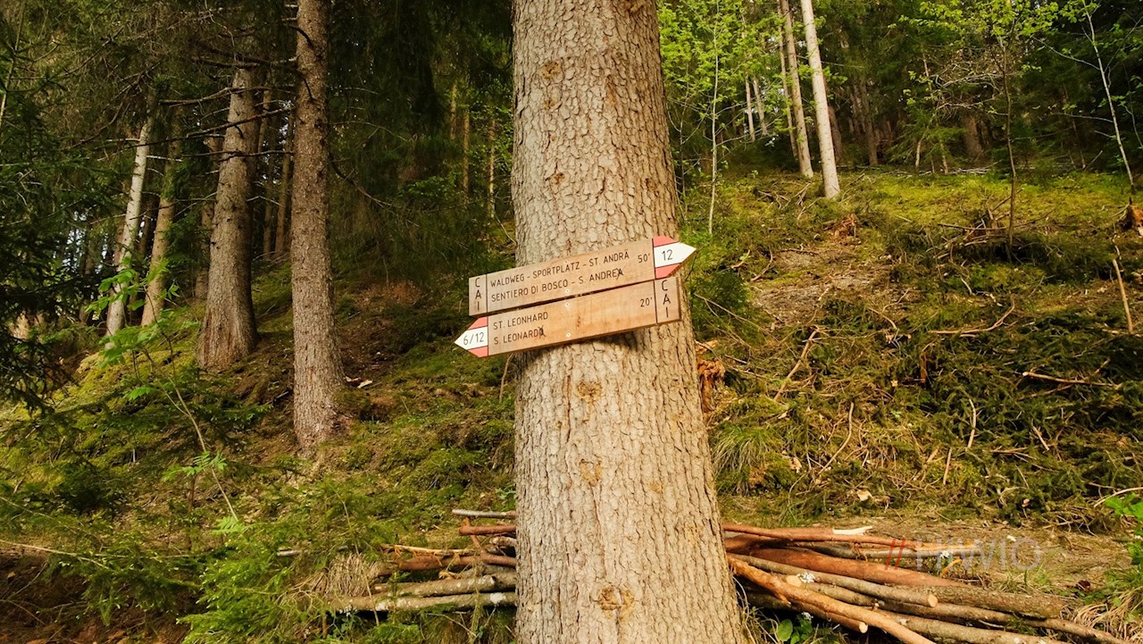 Die Wanderung nach St. Leonhard nimmt im Brixner Stadtteil Stufels ihren Ausgang. An dessen Ostende überquert man die Rienzbrücke und folgt kurz der asphaltierten Lüsner Straße, von der wenig später am rechten Straßenrand der Wanderweg Nr. 6 in Richtung St. Leonhard abzweigt. Nach der Überquerung einer kleinen Holzbrücke geht er in einen wurzel- und steinbeschlagenen Weg über, der ziemlich steil durch einen schattenverheißenden Laubwald ansteigt.