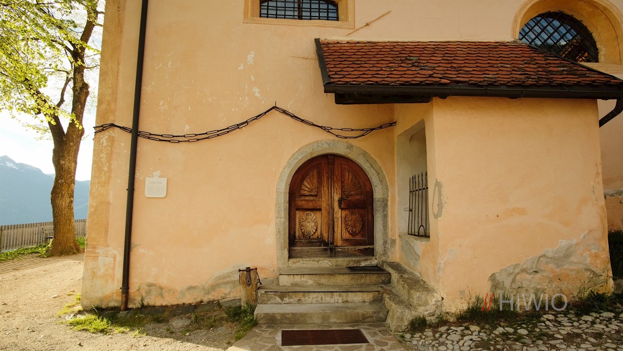 Weiterhin der Wegnummer 6 folgend, führt die Wanderung nun im angenehmen Anstieg durch aussichtsreiche, von einzelnen Bäumen bestandene Blumenwiesen und mündet bei Burgstall in eine asphaltierte Straße. Sie führt direkt ins sonnenverwöhnte Bergdorf St. Leonhard, das neben mehreren Einkehrmöglichkeiten mit einer kuriosen Besonderheit aufwartet: Die idyllisch gelegene Dorfkirche wird von dicken Eisenketten umspannt. Sie erinnern an den Kirchenpatron, den heiligen Leonhard (6. Jhr.), der einst beim Merowingerkönig Chlodwig die Freilassung unschuldig Gefangener erwirkt haben soll. Seither wird er als Schutzheiliger der Gefangenen und Angeketteten verehrt.