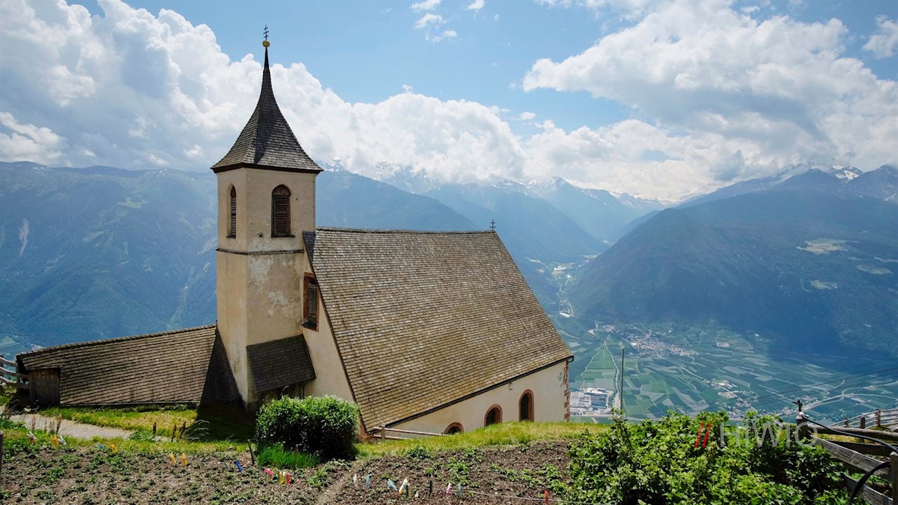 Eng an den Vinschger Sonnenberg geschmiegt, präsentiert sich der Bergbauernweiler St. Martin im Kofel oberhalb von Latsch. Von diesem bezaubernden Weiler führt eine leichte Wanderung zum Aussichtspunkt Dolomitenblick.
