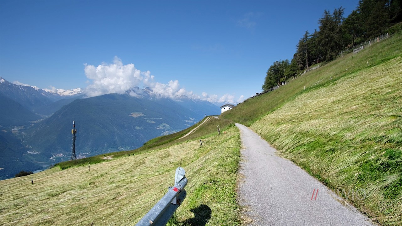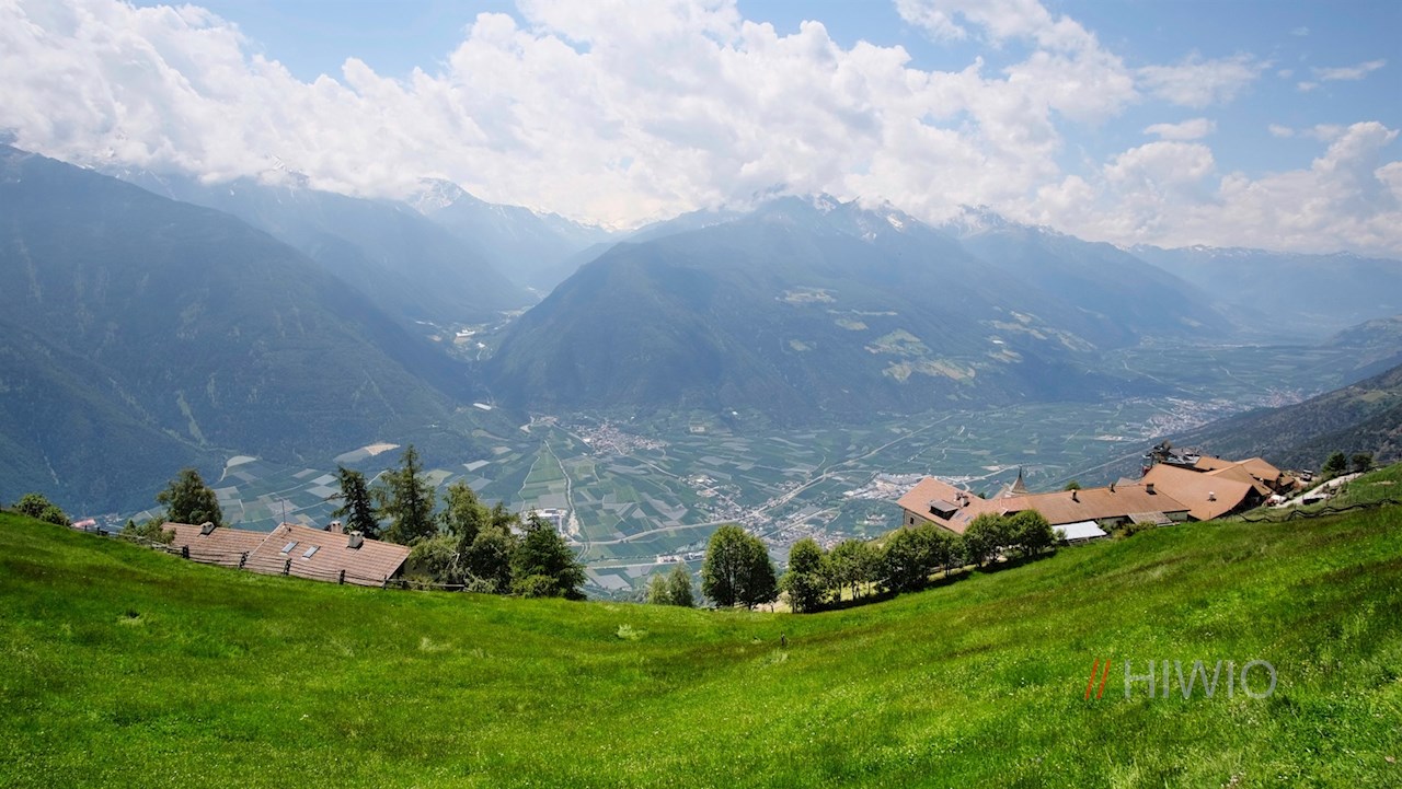 Die Wanderung zum Dolomitenblick beginnt an der Talstation der Bergbahn St. Martin im Kofel in Latsch im mittleren Vinschgau. Mit der Bahn fährt man zunächst einfach und bequem zu diesem idyllischen Höhenweiler am Vinschger Sonnenberg hoch, der aus der Zeit gefallen scheint.
