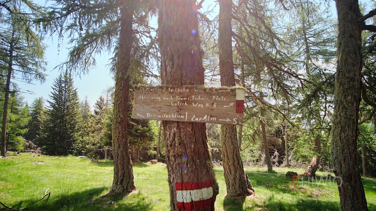 Auf dem Rückweg folgt man zunächst dem bereits bekannten Weg. An der nächsten Weggabelung schlägt man diesmal aber den Weg Nr. 1 ein, der durch aussichtsreiche Wiesen und Wälder nach St. Martin im Kofel zurückführt.
