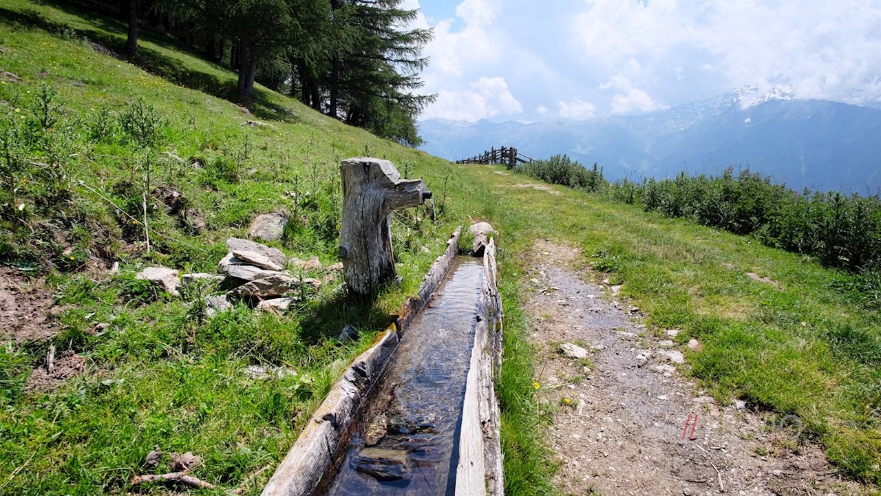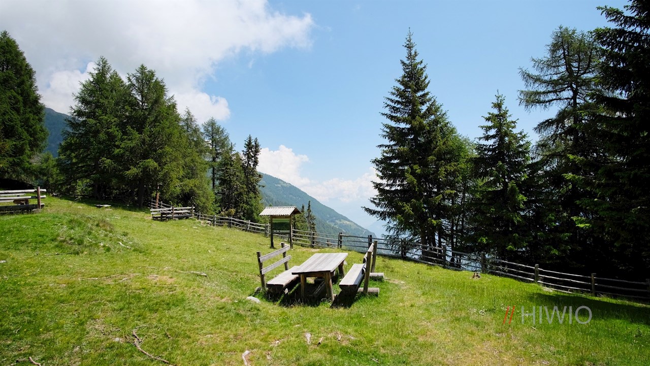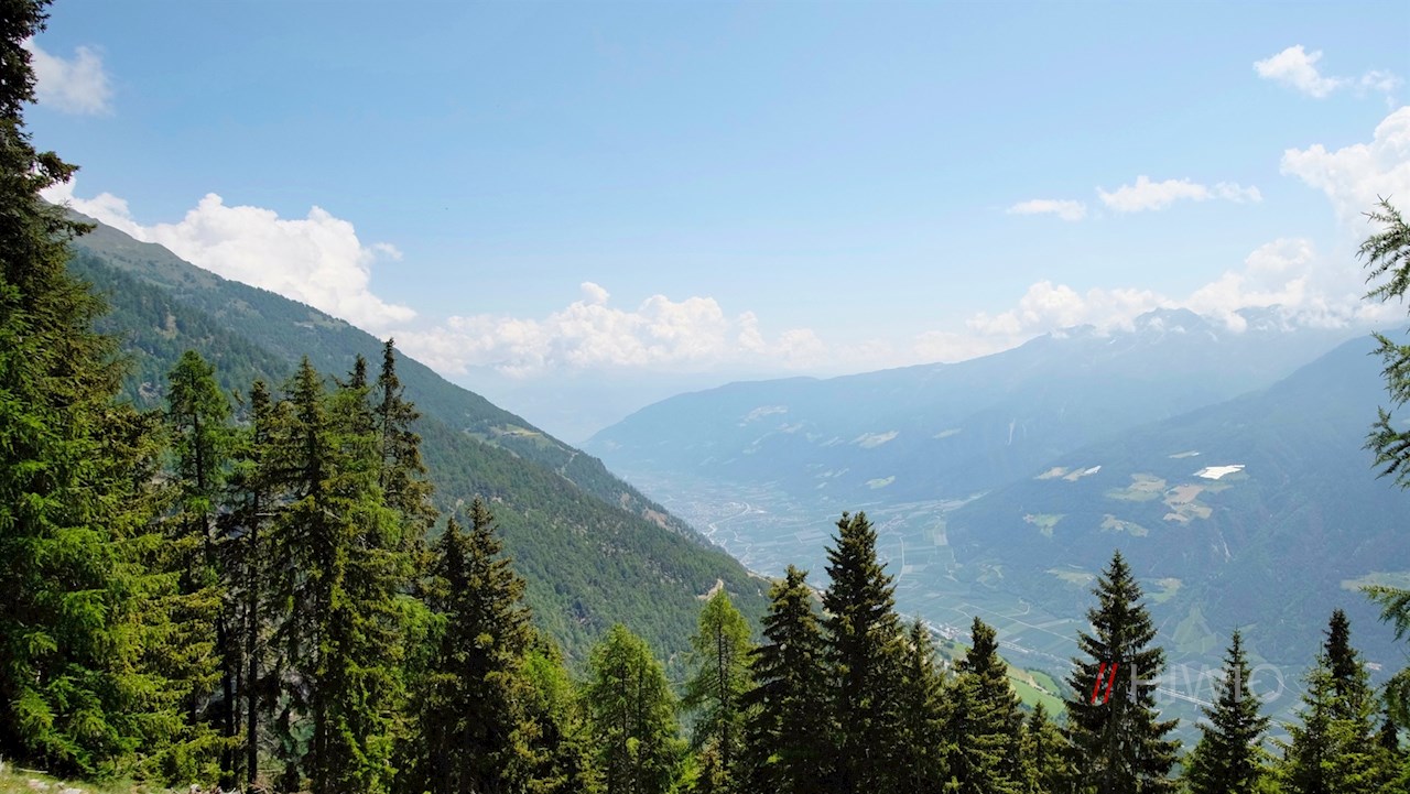 Kurz vor der gemütlichen Jausenstation Platztair zweigt links der Wanderweg Nr. 1A in Richtung Dolomitenblick ab. Er führt im anfangs recht steilen Anstieg durch einen von Lärchen geprägten Wald zu diesem malerischen, etwa 40 Gehminuten entfernten Aussichtspunkt. Er liegt inmitten einer idyllischen Wiese, auf der einige Tische und Bänke zum Verweilen einladen. Insbesondere aber entfaltet sich hier oben ein schöner Ausblick auf die Dolomiten und den östlichen Vinschgau.