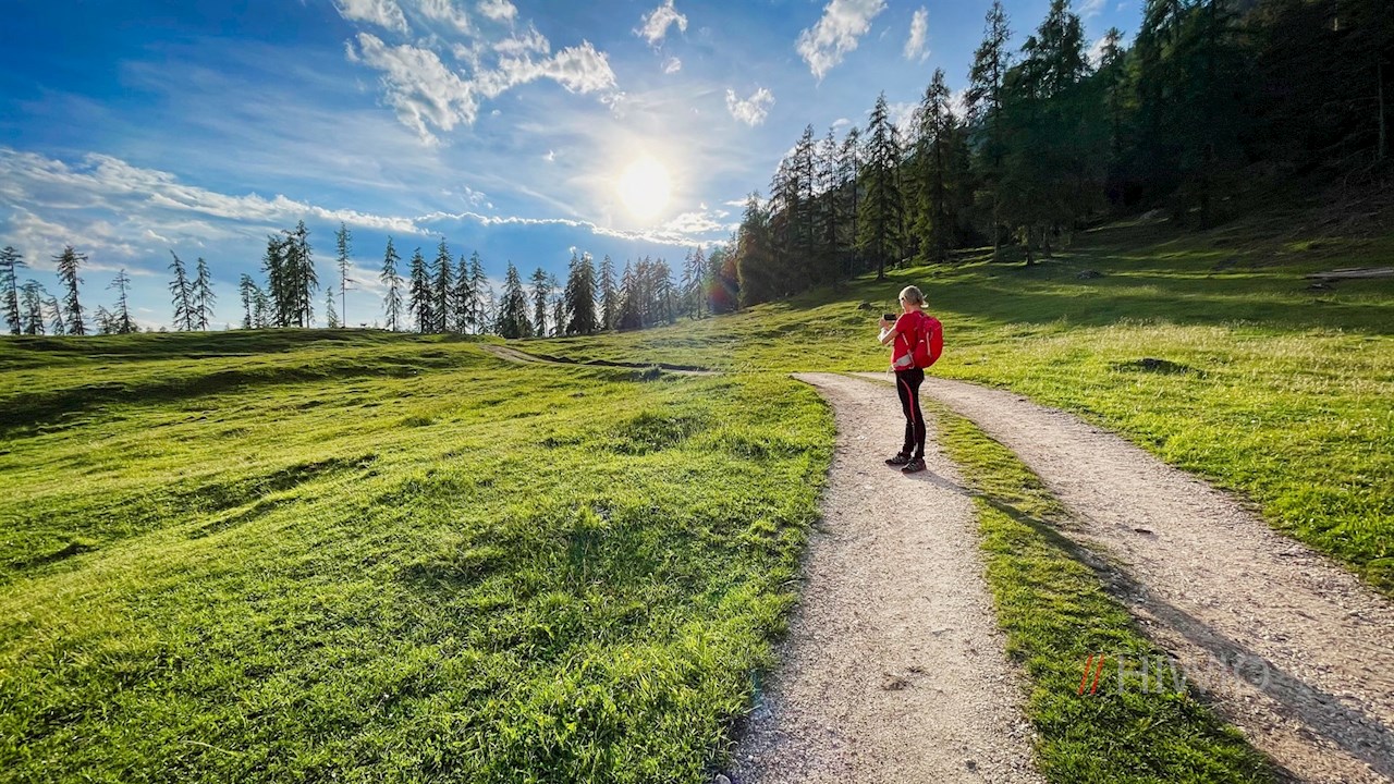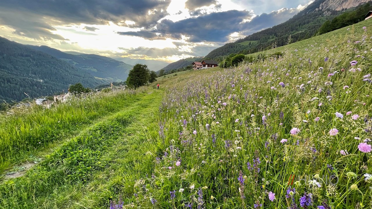 Von Tiers führt eine schöne Wanderung zum Kirchlein St. Sebastian und über den Wuhnleger wieder zurück. Auf Letzterem öffnet sich ein atemberaubend schöner Ausblick auf den in der Abenddämmerung leuchtenden Rosengarten.