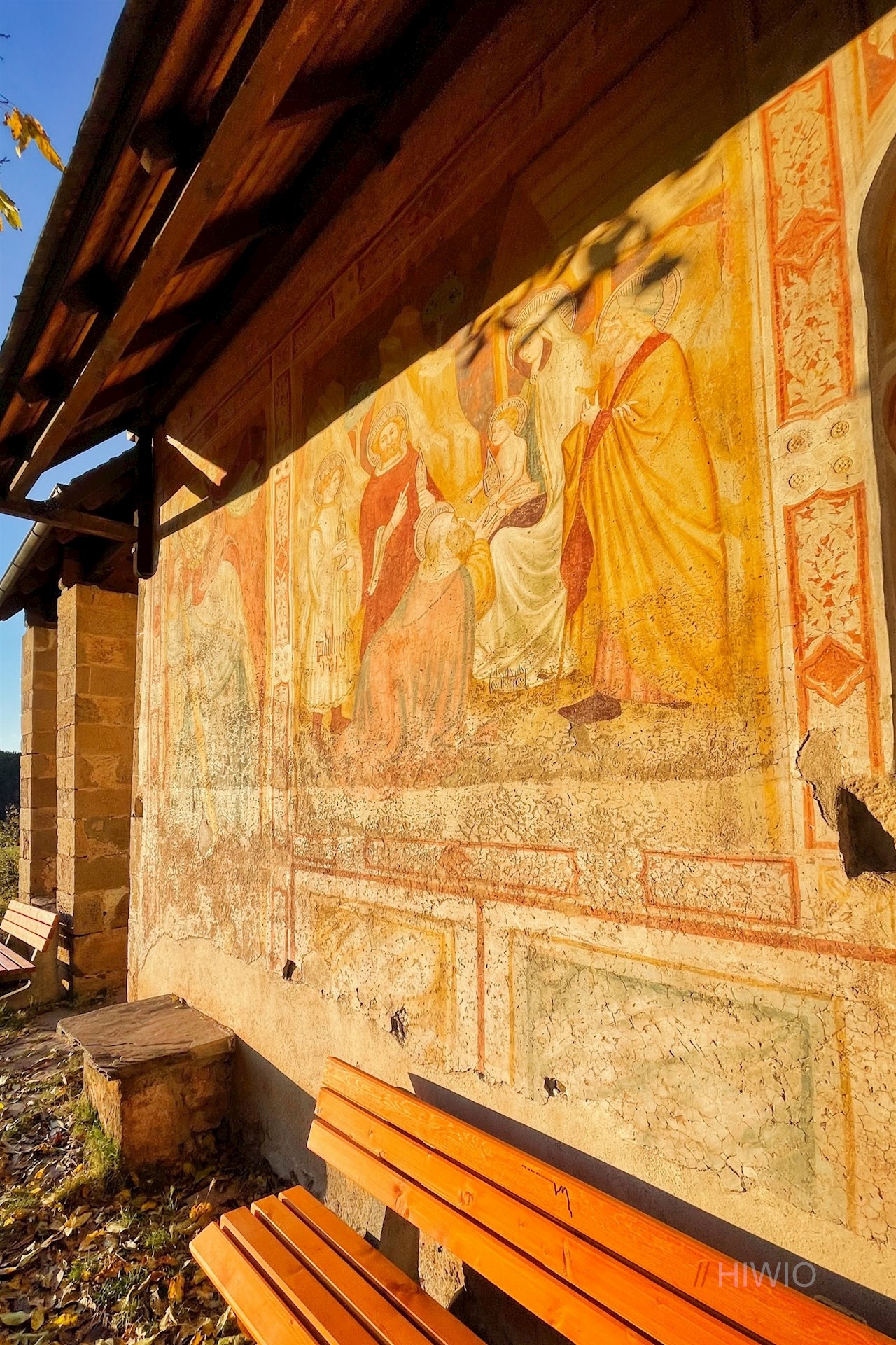 Ihre Mauern werden von farbenfrohen Fresken aus dem 14. und 15. Jahrhundert geschmückt, die neben diversen Heiligen wie der heiligen Maria oder dem heiligen Christopherus auch den Schutzpatron der Kirche, den heiligen Valentin, zeigen.