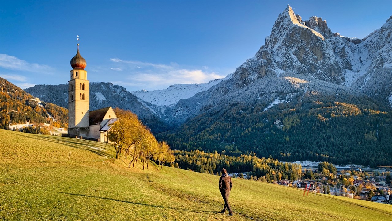 Die St. Valentin Kirche oberhalb von Seis am Schlern zählt zu den beliebtesten Fotomotiven Südtirols. Zu diesem idyllischen Gotteshaus führt eine kurze, aber umso lohnendere Wanderung.