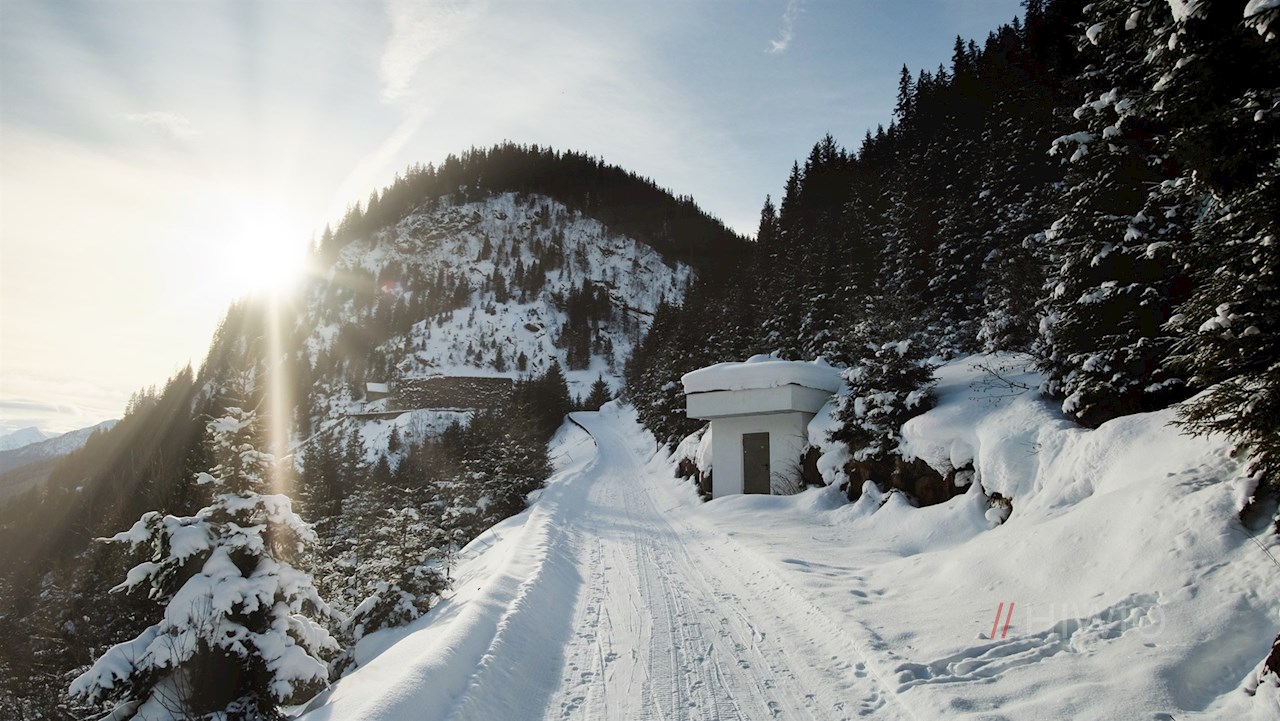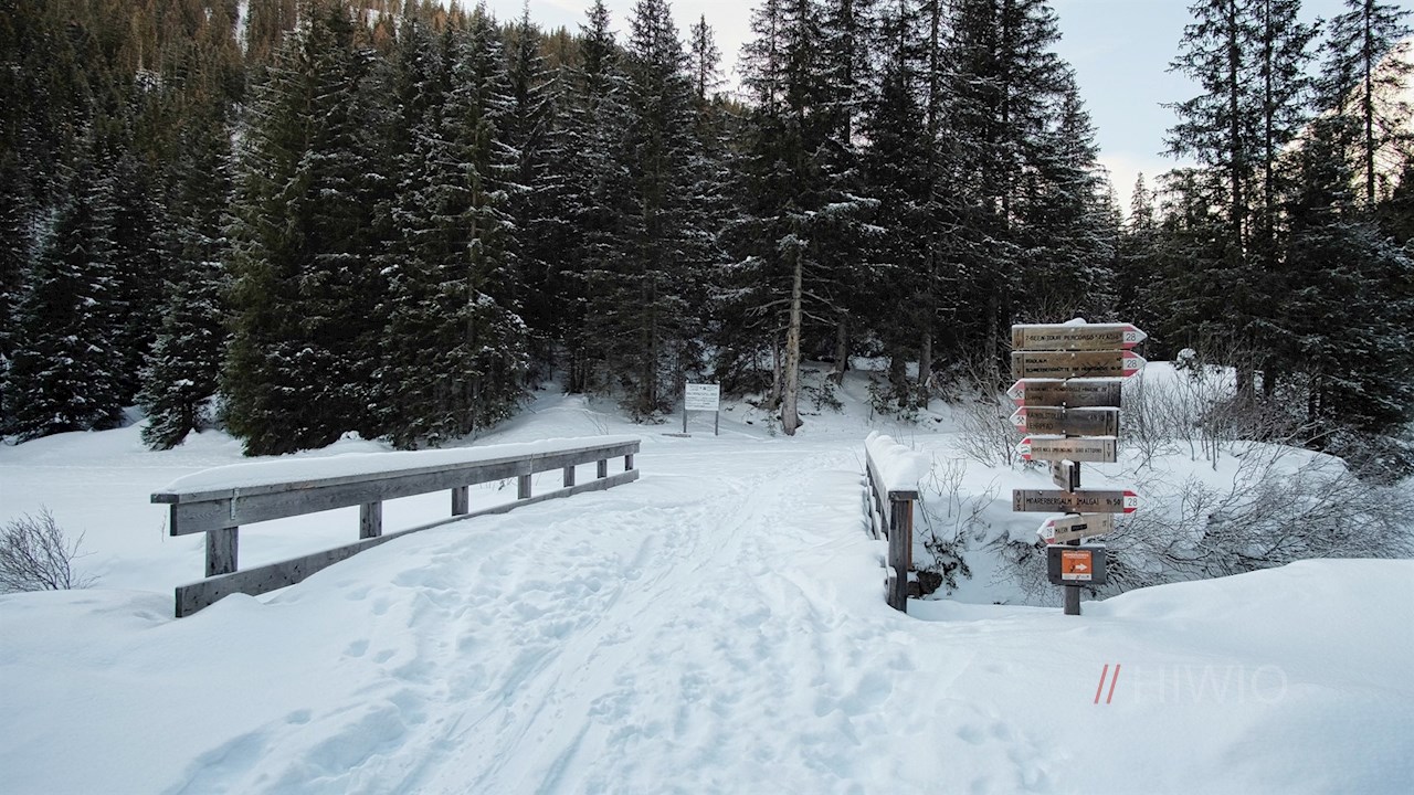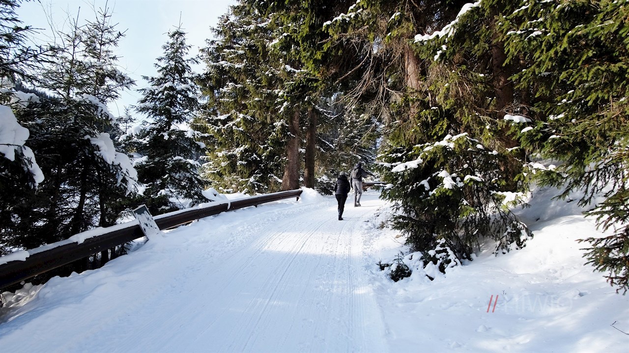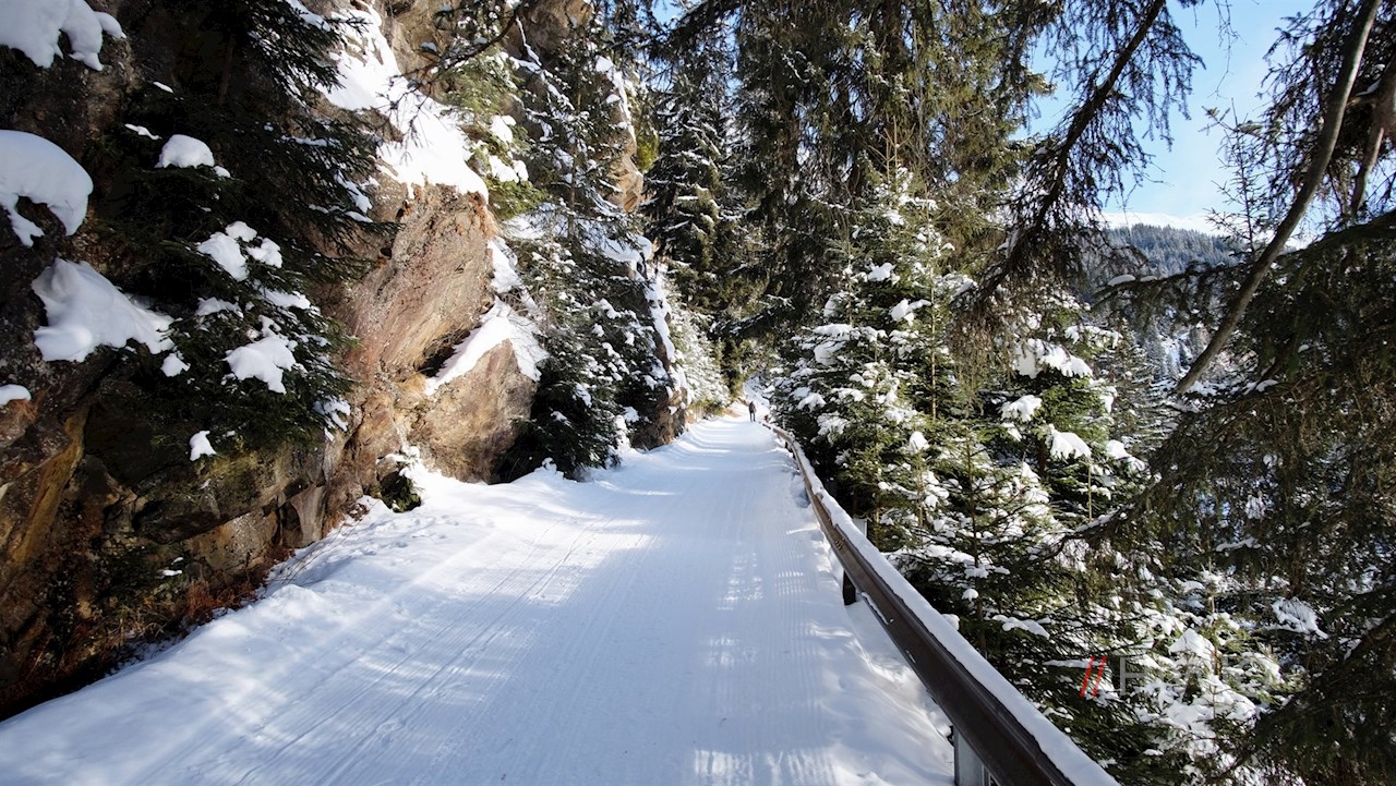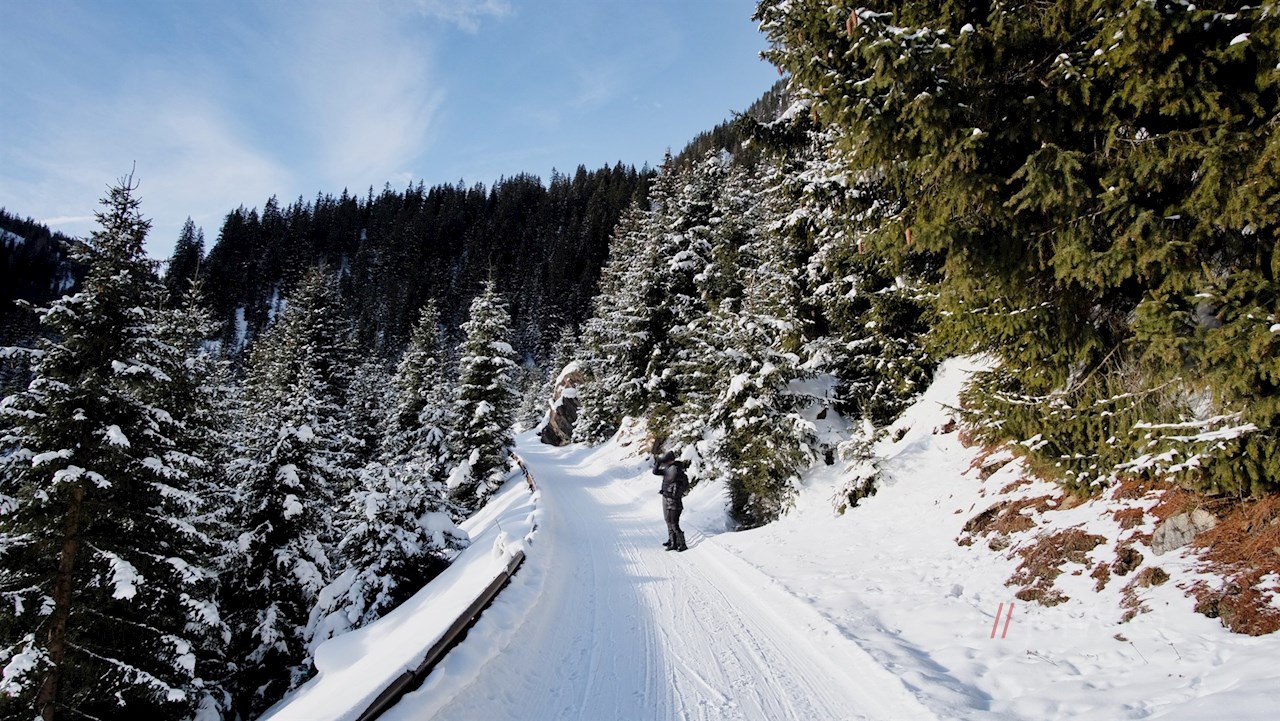 Stets der Beschilderung Nr. 28 in Richtung Stadlalm folgend, führt der breite, von schneebedeckten Nadelbäumen umsäumte Rodelweg durch das naturbelassene Lazzacher Tal. Unterwegs erschließen sich immer wieder malerische Ausblicke ins Ridnauntal.