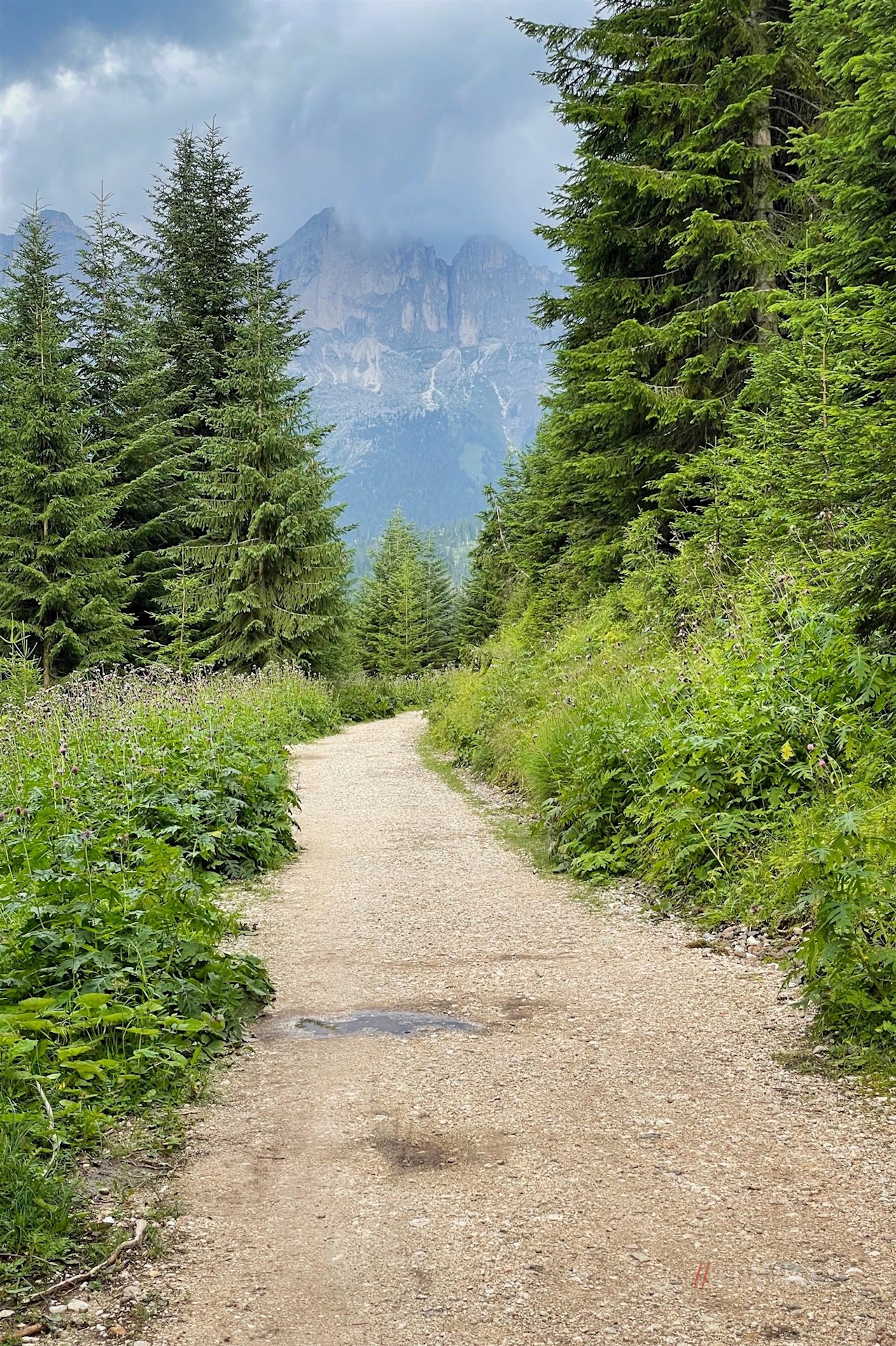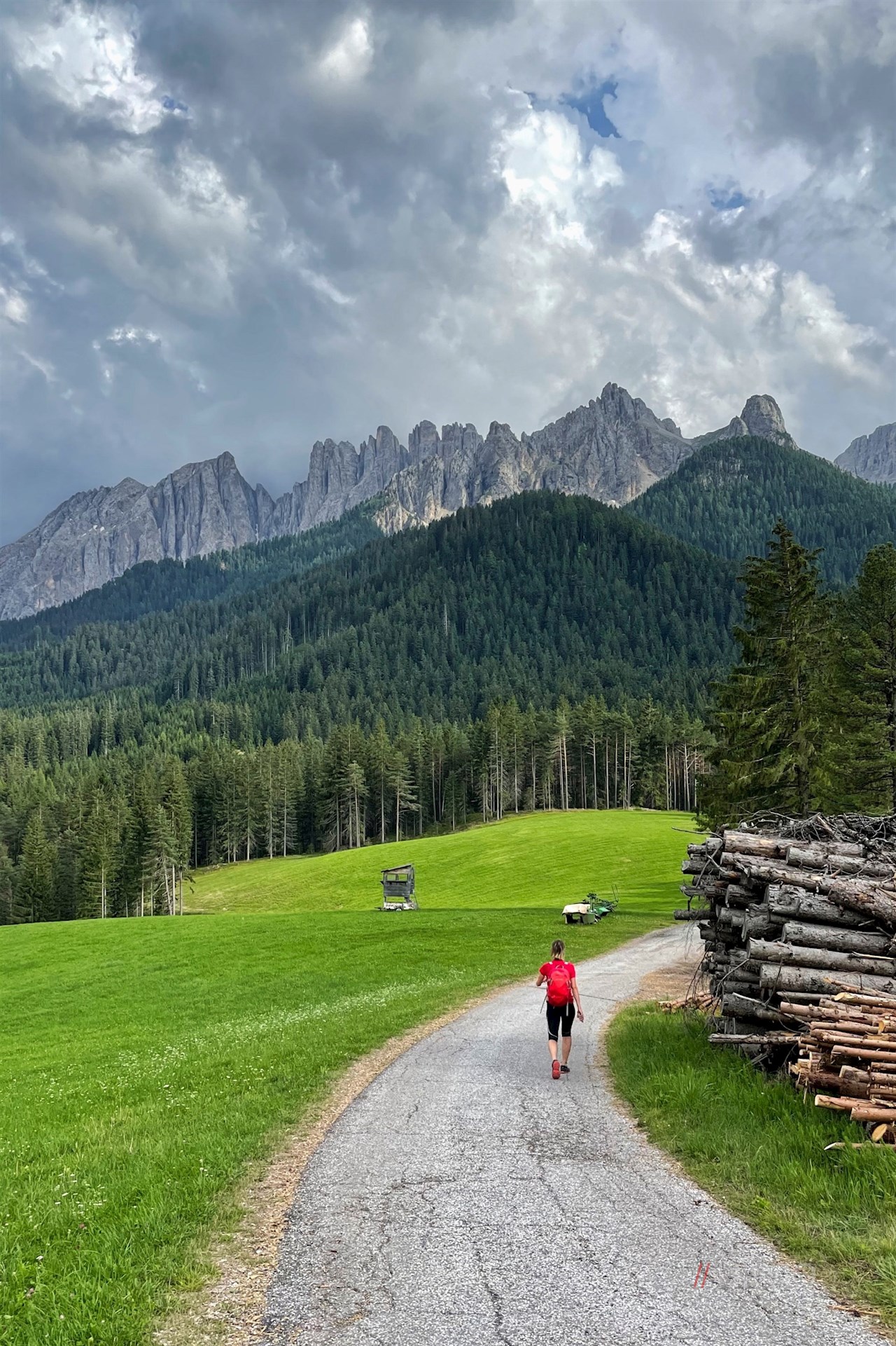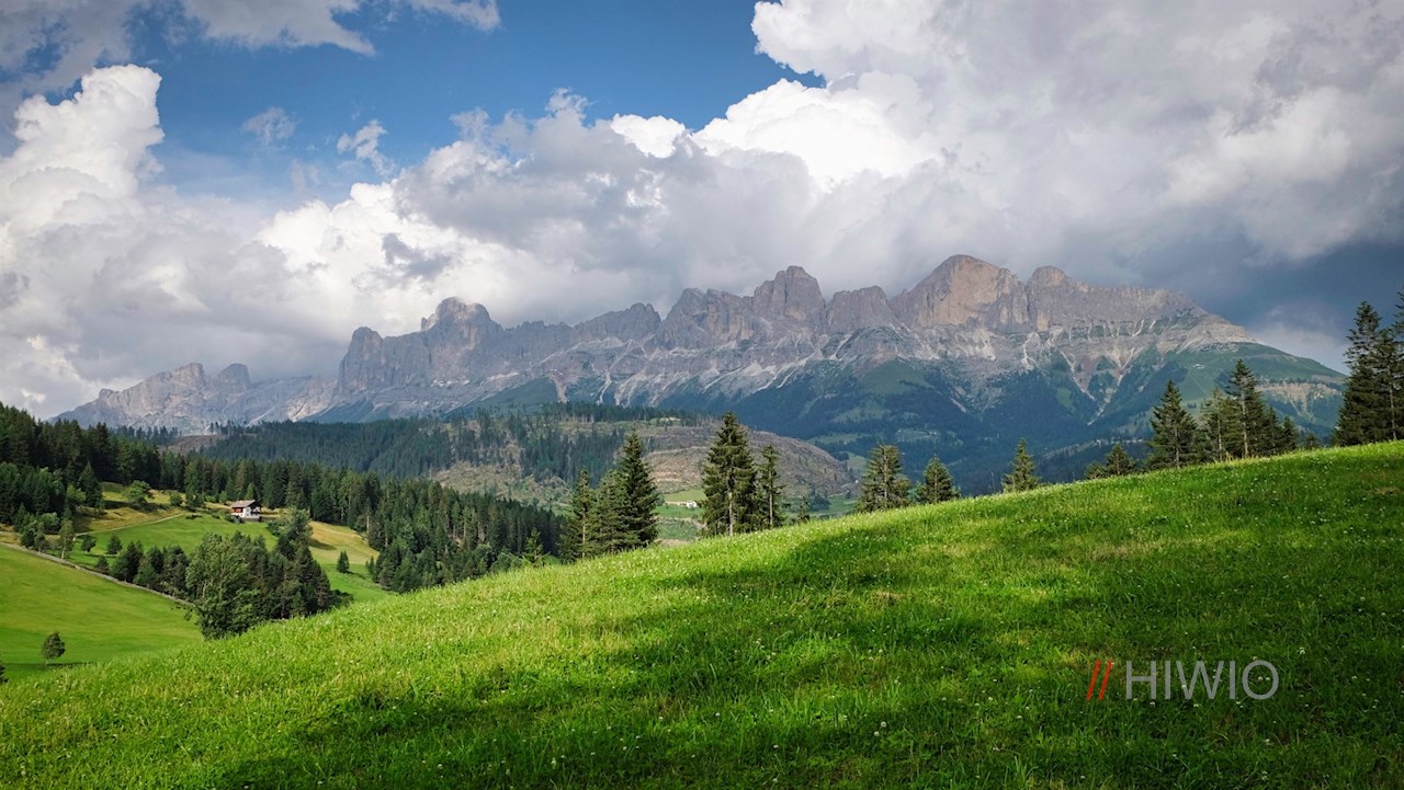 Schließlich erreicht man eine Weggabelung, an welcher der Wanderweg Nr. 25A zur Stadlalm abzweigt. Er führt zu einer ausgedehnten Waldlichtung, in der sich atemberaubend schöne Ausblicke auf den sagenumwobenen Rosengarten und den zackenreichen Latemar öffnen.