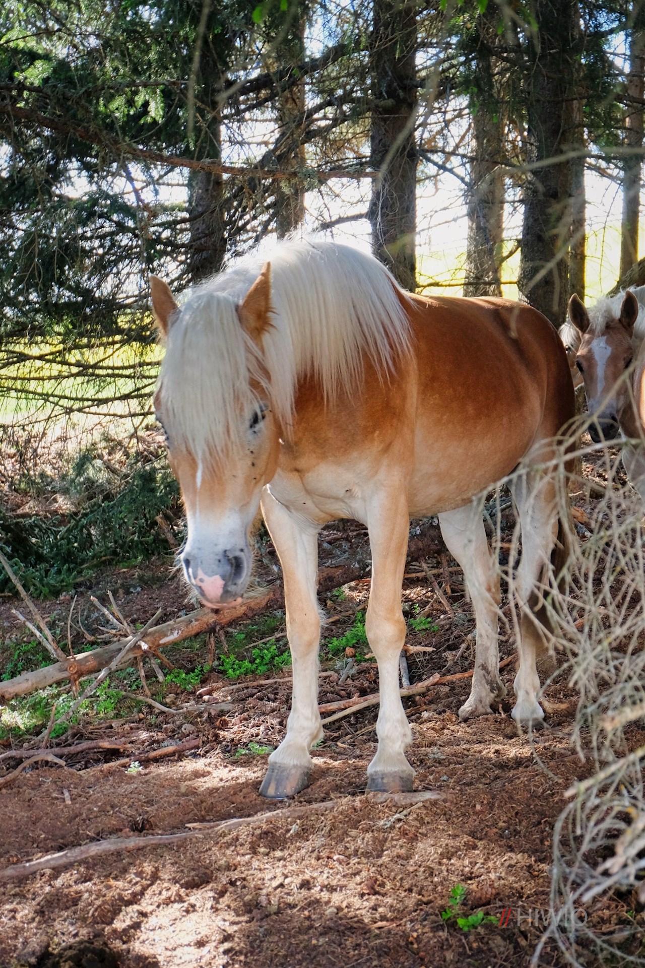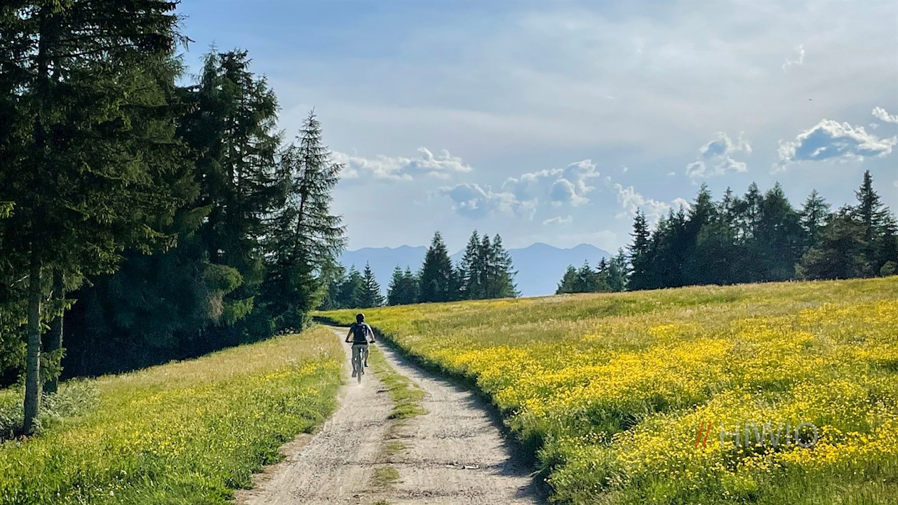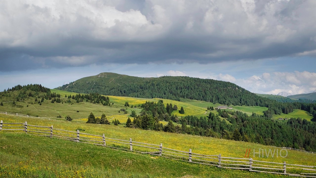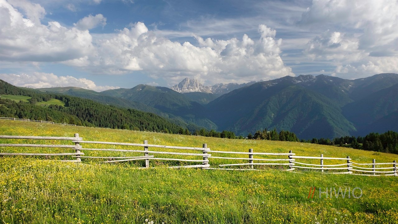 Am Parkplatz weist das Wanderschild Nr. 3 den Weg auf die Lüsner-Rodenecker Alm. Er schlängelt sich im sanften Anstieg durch lichten Wald, der hie und da schöne Ausblicke auf die gegenüberliegende Bergwelt freigibt.