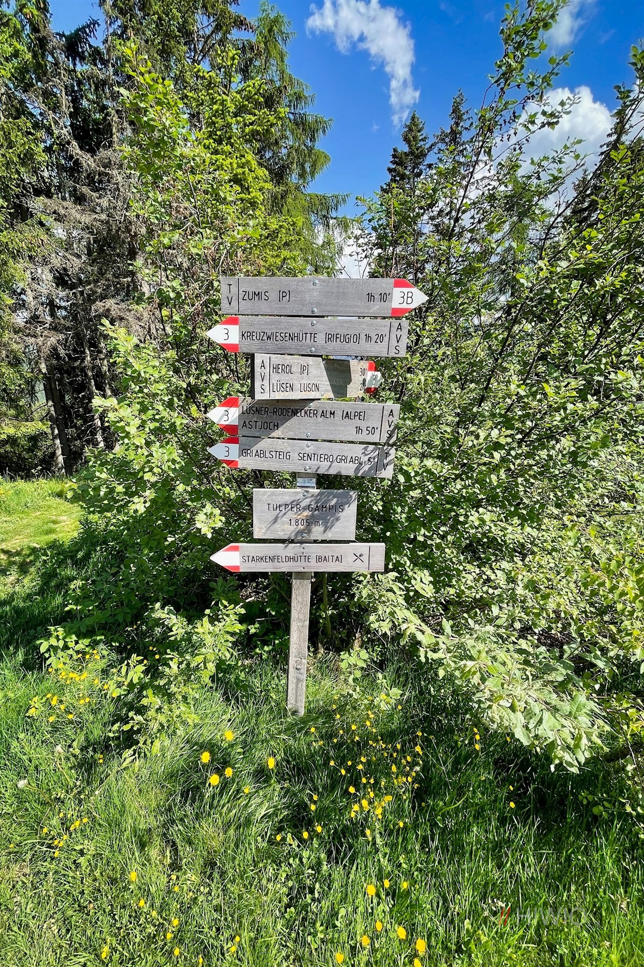 Die Almwanderung zur Starkenfeldhütte beginnt auf dem gebührenpflichtigen Wanderparkplatz Herol oberhalb von Lüsen.