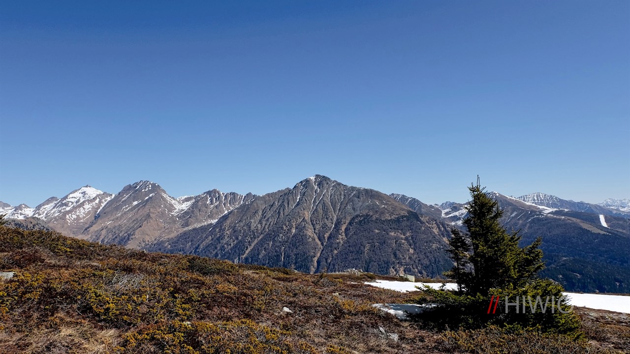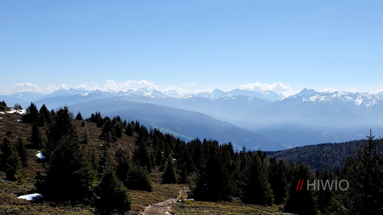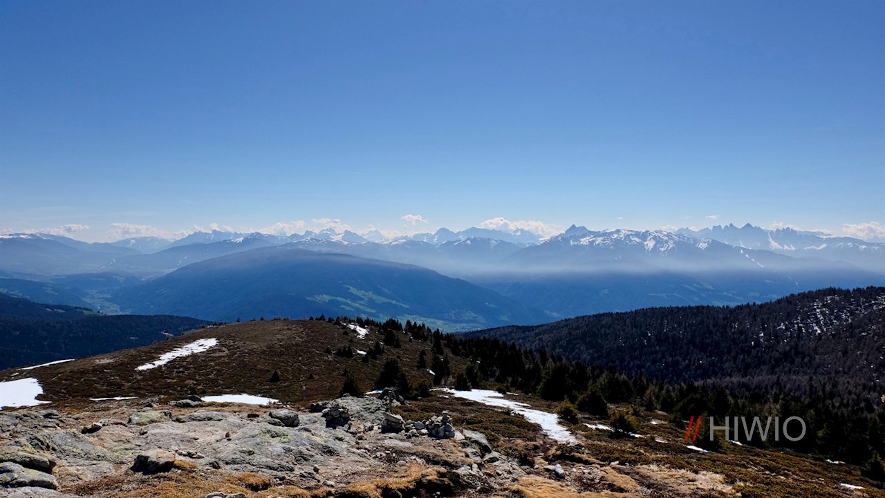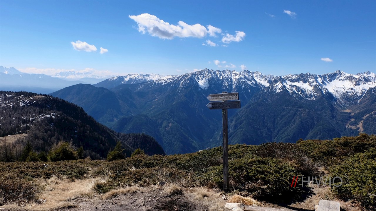 Neben dem Gipfelkreuz des Stoanamandl genießt man schließlich einen malerischen Panoramablick auf die Pfunderer Bergwelt, das tiefer liegende Pustertal, die bleichen Dolomiten und die Sarntaler Alpen.