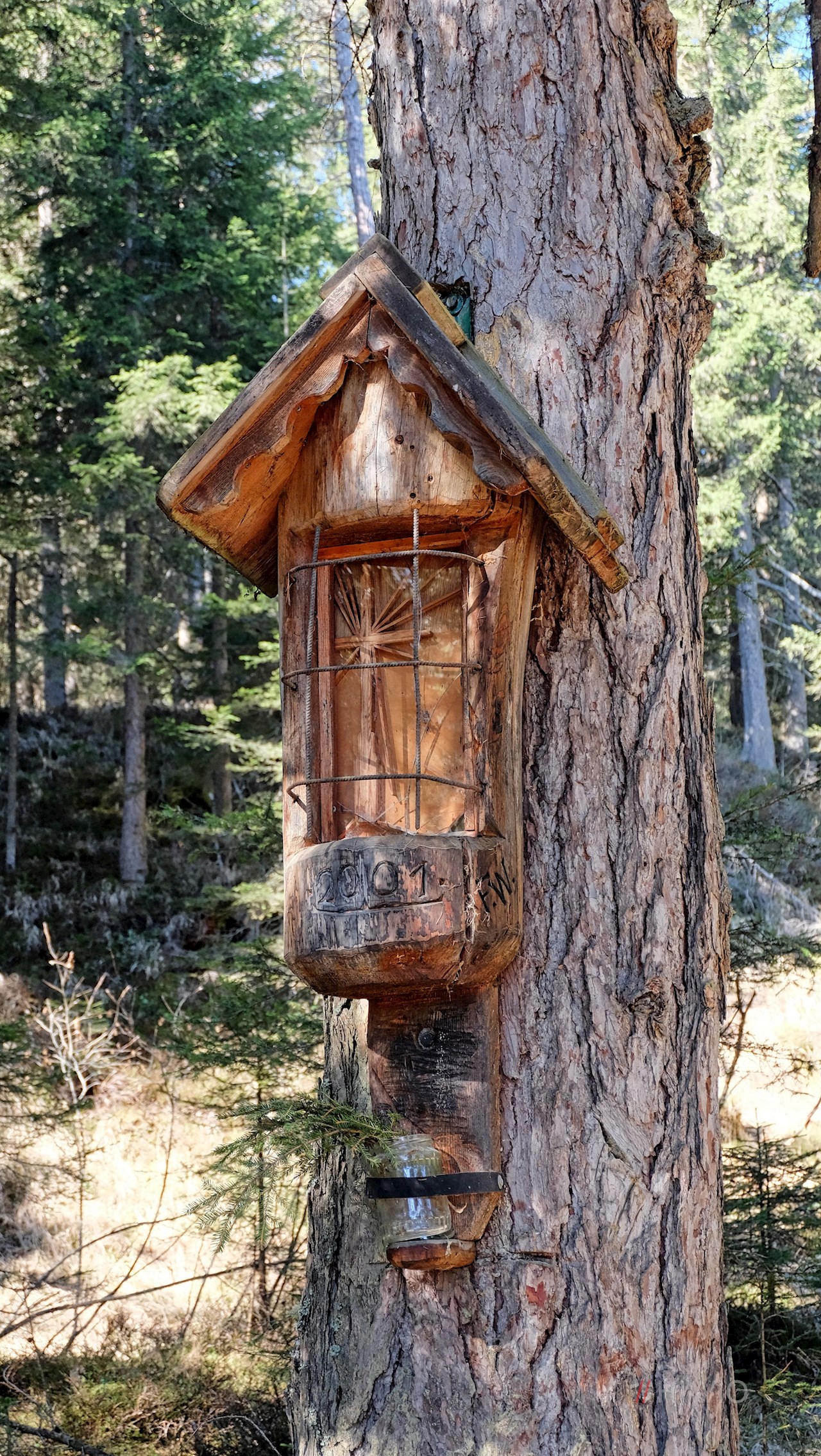 Ausgangspunkt der abgeschiedenen Wanderung zum Stoanamandl ist der Parkplatz „Bild Wetterkreuz“ oberhalb des Dorfes Spinges, den man über die „Bergstraße“ nahe der Dorfeinfahrt anfährt.