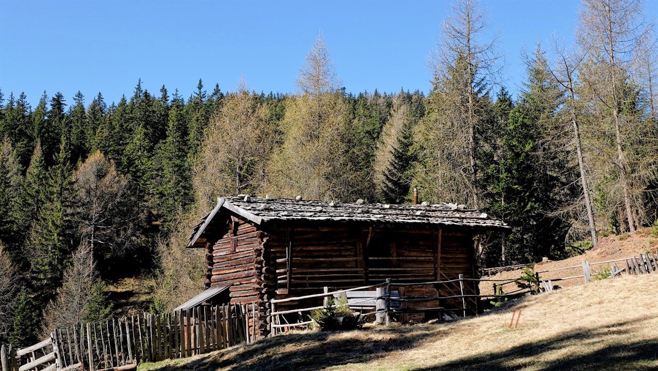Auf dem Rückweg vom Stoanamandl folgt man zunächst dem Hinweg. An der nächsten Weggabelung schlägt man diesmal aber den Weg Nr. 1B in Richtung Anratterhütte ein.