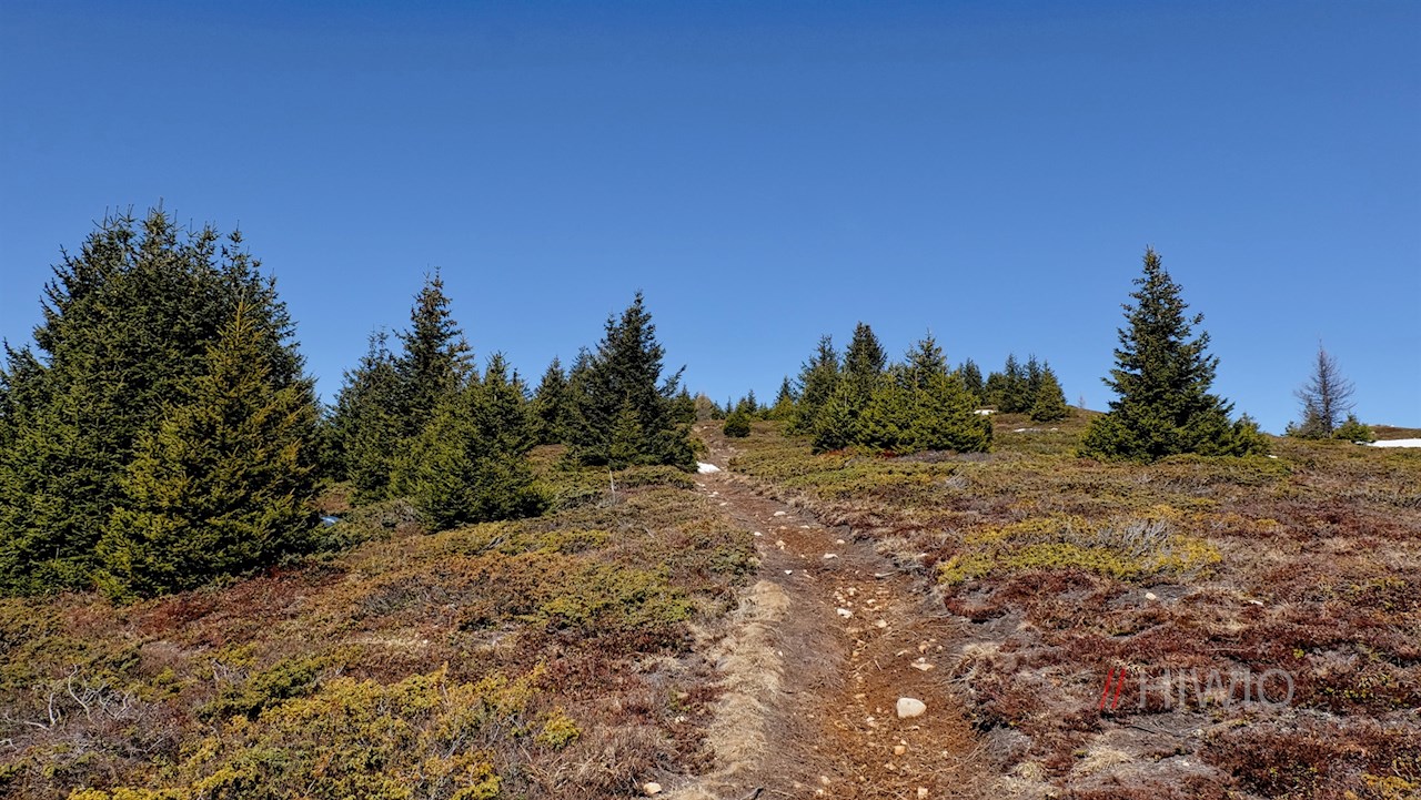 Nach etwa 40 Minuten zweigt am linken Wegesrand der durchwegs gut markierte, anfangs breite Weg Nr. 1 in Richtung Stoanamandl ab. Er steigt in friedvoller Abgeschiedenheit durch einen lichten Wald und über aussichtsreiche Wiesen- und Heidehänge auf den aussichtsreichen Gipfel an.