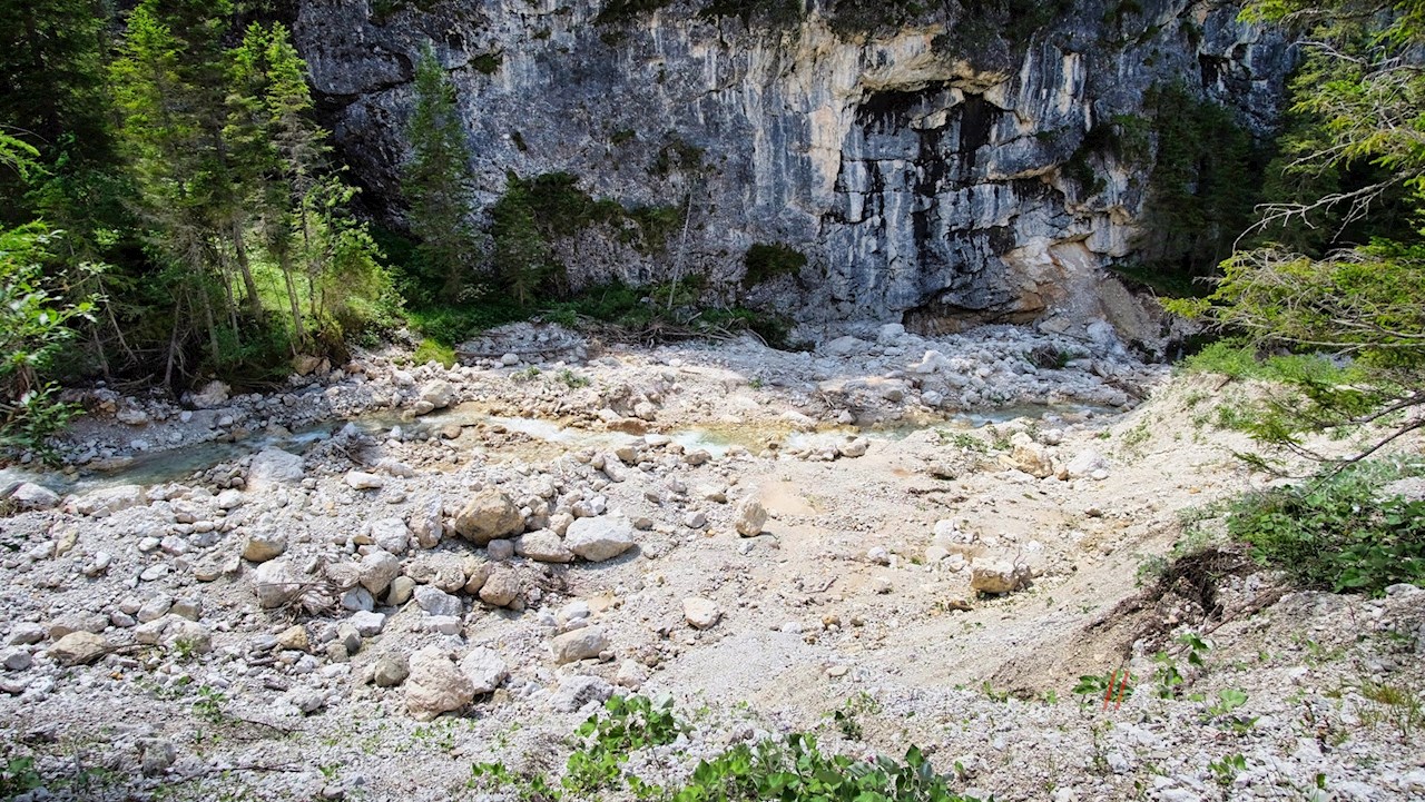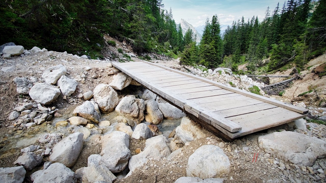Nach etwa eineinhalb Stunden steten Wanderns erreicht man die rustikale Stolla Alm. Von den mächtigen Felswänden des Dürrenstein und der Hohen Gaisl umrahmt, lädt sie inmitten einer baumbestandenen Lichtung zur genussreichen Einkehr.