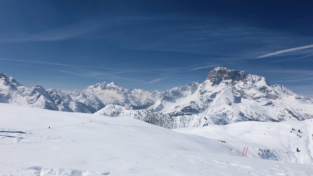 Auf 2.305 m Höhe erschließt sich wenig später ein wahrlich unvergesslicher Panoramablick auf die umliegenden Dolomiten. Namentlich die nahen Drei Zinnen, der Monte Cristallo, die Hohe Gaisl und der Dürrenstein stechen ins Auge.