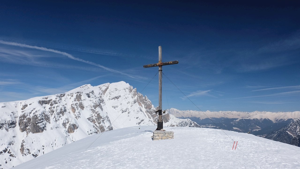 Nun ist das nahe Gipfelkreuz des Strudelkopf bereits in Sicht. Es wurde im Jahre 1982 im Gedenken an die gefallenen Soldaten des Ersten und Zweiten Weltkrieges errichtet und wird im Volksmund auch "Heimkehrerkreuz" genannt.