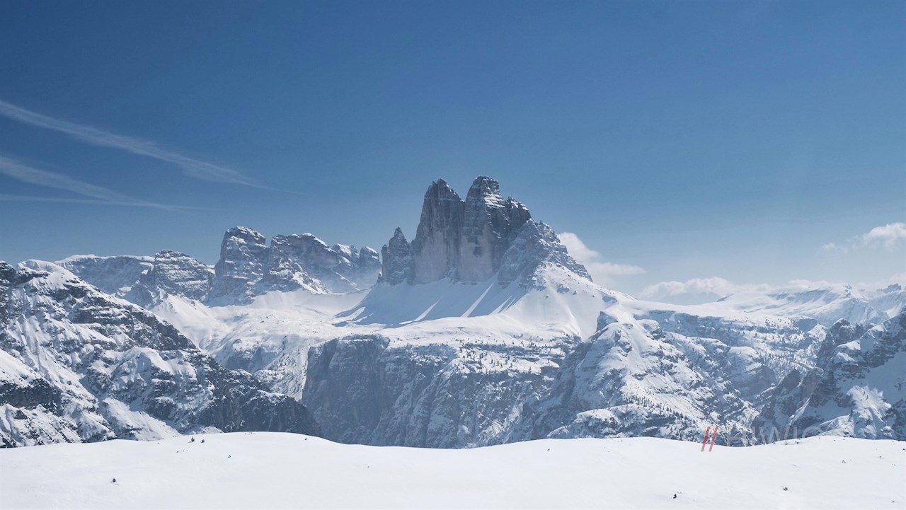 Der Strudelkopf mit Blick auf die Drei Zinnen ist sommers wie winters ein beliebtes Wanderziel in den Pragser Dolomiten. Im Winter erfreut er sich bei Schneeschuhwanderern, Skitourengehern und Wanderern großer Beliebtheit.