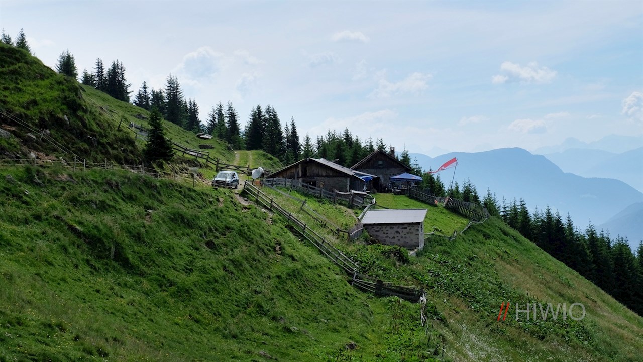 Schließlich lichtet sich der Wald und gibt den Blick auf die rustikale Freundalm zu Füßen der Telfer Weißen frei. Inmitten sanft gewellter Almwiesen lädt sie wenig später zur ersten Zwischenrast vor der beeindruckenden Kulisse der Stubaier Alpen im Westen, der Sarntaler Alpen im Süden und der Dolomiten im Südosten ein.
