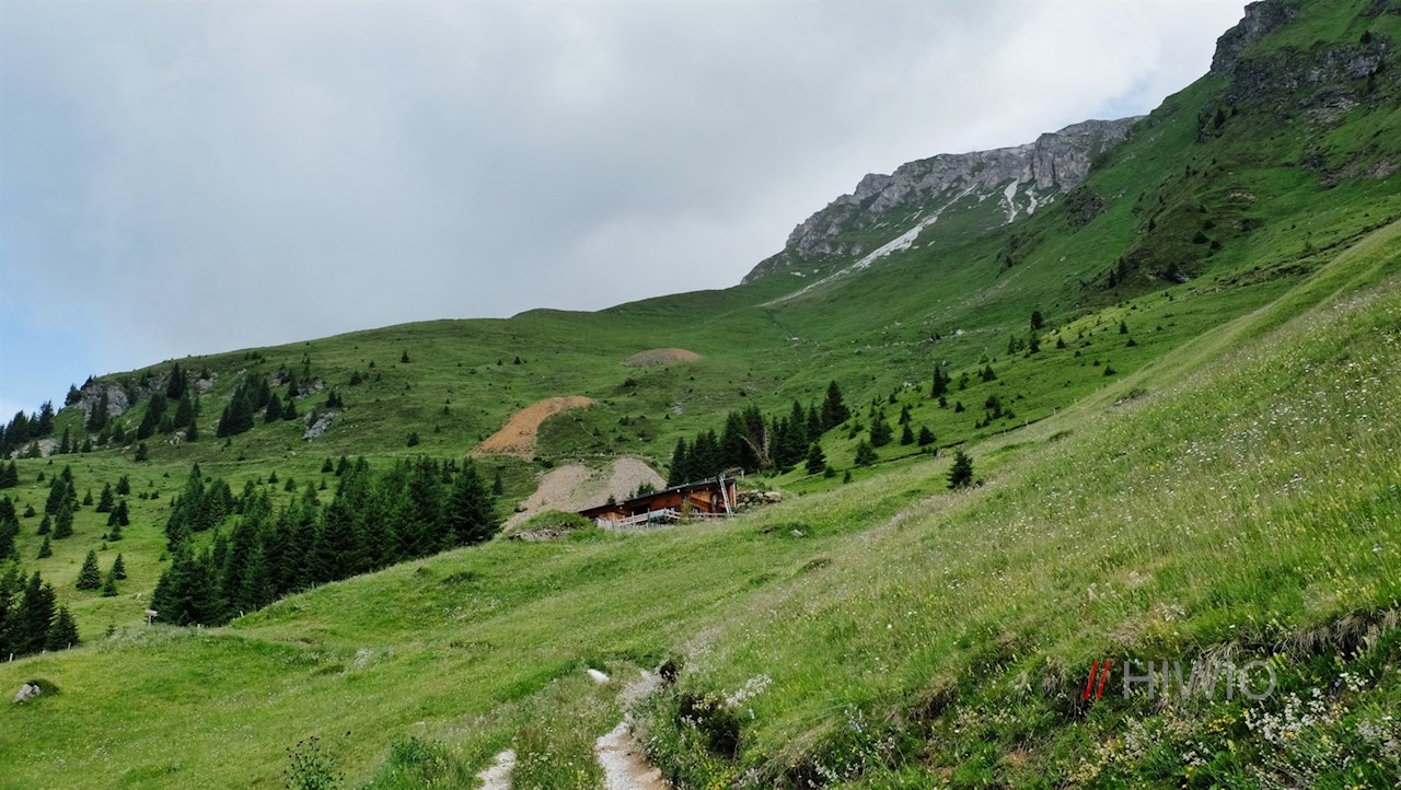 Nunmehr der Beschilderung Nr. 6 in Richtung Ochsenscharte folgend, steigt der Weg sanft durch die verträumten Almwiesen zur Ochsenalm an, von welcher der nahezu ebene Dolomieu-6-Almen-Weg zur nahe gelegenen Kuhalm weiterführt. Beide Almhütten laden zur genussreichen Einkehr.