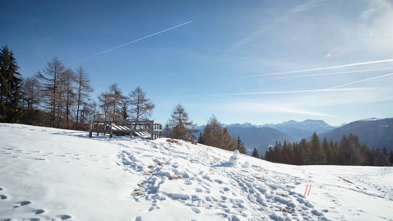 Auch im Winter sind die Natursolarien auf dem Gols ein lohnendes Ausflugsziel. Hoch über Terenten laden sie vor der malerischen Kulisse der gegenüberliegenden Dolomiten zum entspannten Sonnenbad ein. Den Rückweg kann man eventuell mit der Rodel zurücklegen.