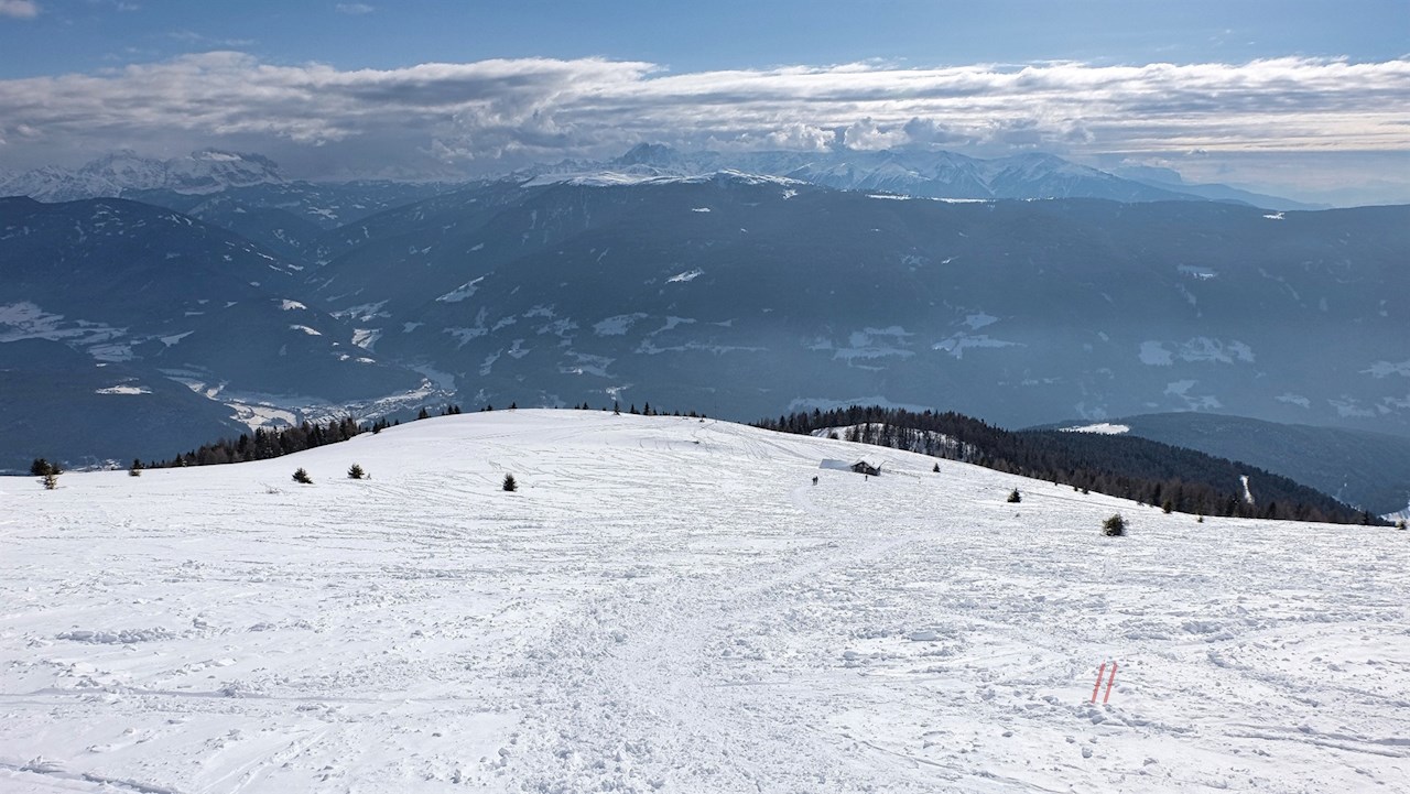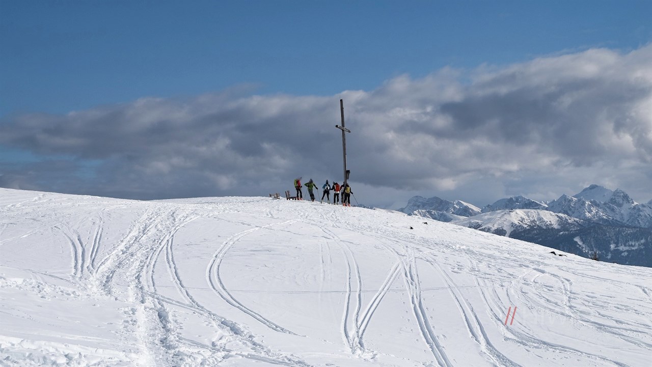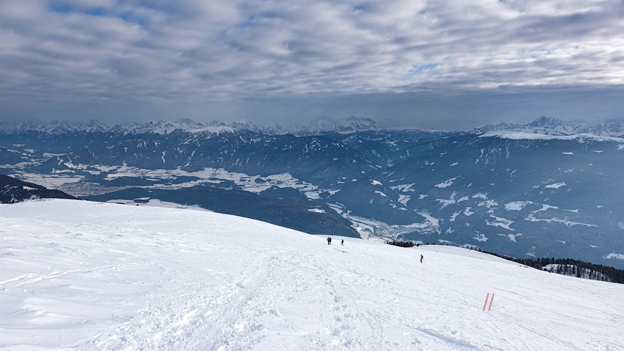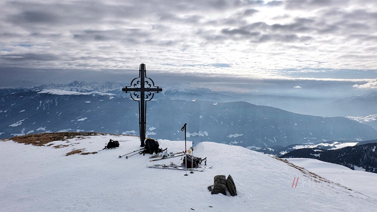 Neben dem formschönen Gipfelkreuz erschließt sich ein verzückender Ausblick auf die umliegende Bergwelt. Während sich auf der gegenüberliegenden Seite markante Berge wie der Peitlerkofel, die Rodenecker Alm oder die Plose erheben, lassen sich im Westen zwei weitere beliebte Wanderziele in Terenten ausmachen: die Eidechsspitze und die gemütliche Tiefrastenhütte.