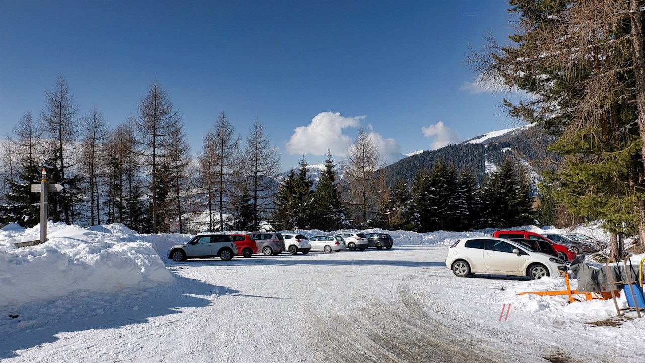 Die Winterwanderung auf das Terner Jöchl nimmt auf dem Wanderparkplatz oberhalb des Berggasthofes Nunewieser ihren Anfang, den man über Pichlern bei Terenten anfährt. Am Straßenrand weist ein Schild mit der Aufschrift „Gasthof Nunewieser/Pertinger Alm“ den Weg zum Ausgangspunkt.