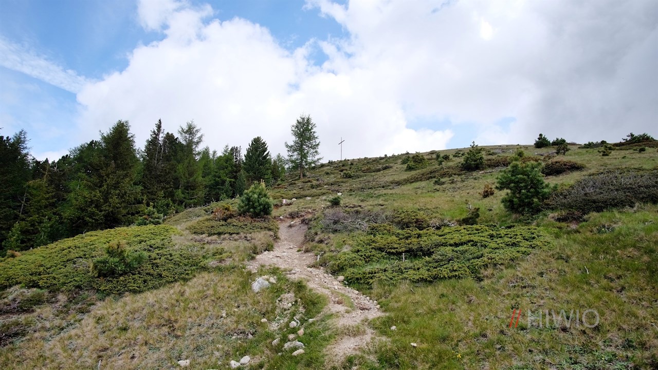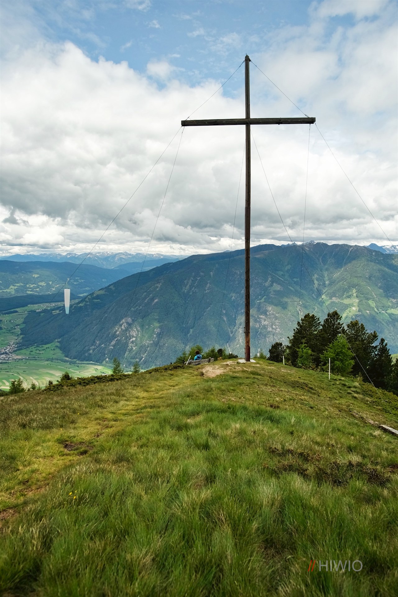 Schließlich erreicht man die Waldgrenze, hinter welcher der nunmehr schmale Pfad durch die aussichtsreichen, von Zwergsträuchern bewachsenen Bergwiesen auf den bereits sichtbaren Gipfel der Geige ansteigt. Auf der Aussichtsbank am Fuße des hohen Gipfelkreuzes entfaltet sich wenig später eine atemberaubende Weitsicht auf Bruneck, das vordere Ahrntal und die ringsum aufragende Bergwelt.