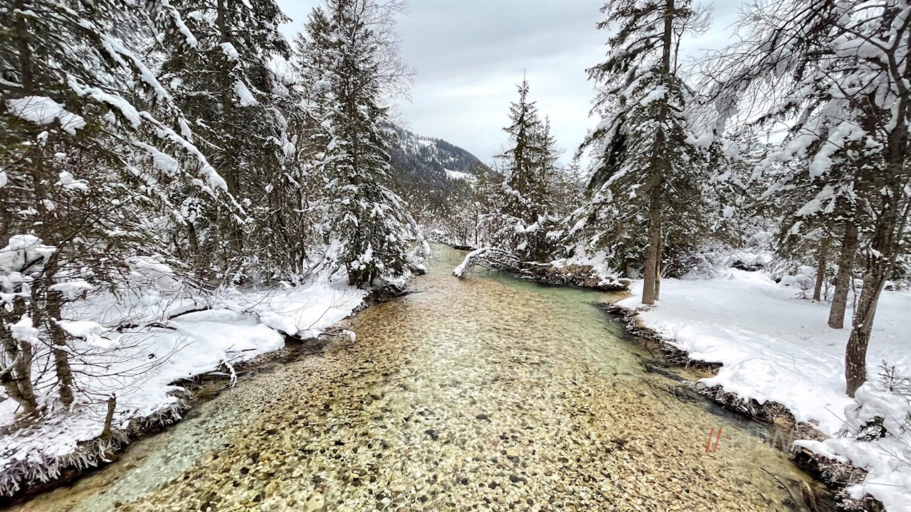 So erfährt man beispielsweise, dass unter der glitzernden Schneedecke am verlandeten Südufer eines der wenigen Feuchtgebiete des Alpenraums ruht. In den warmen Jahreszeiten wachsen hier Pflanzen, die bestens an die nassen Bedingungen angepasst sind.
