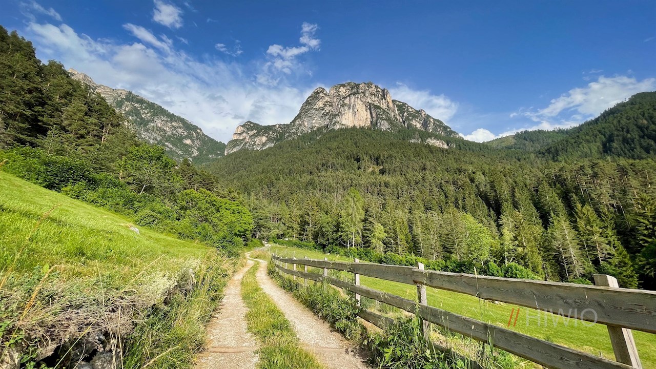 Stets der Wegnummer 4 in Richtung Tschafonhütte folgend, führt der anfangs asphaltierte Weg zunächst an einzelnen Häusern und Höfen vorbei und öffnet dabei schöne Ausblicke auf unser Wanderziel: den 1.834 m hohen Tschafon und die benachbarte Hammerwand.