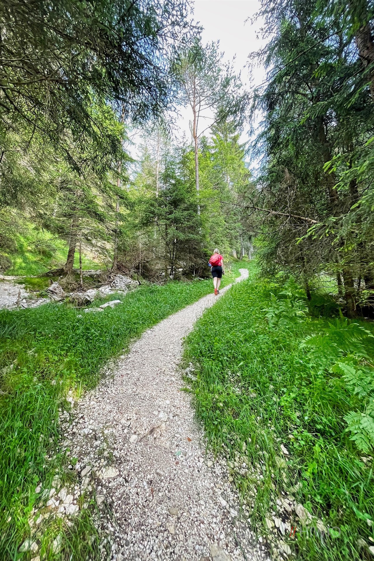 Wenig später geht er in einen schönen Wanderweg über. Dieser taucht alsbald in einen kühlen, vom kleinen Schwarzbach durchflossenen Wald ein, durch den er stetig ansteigt.