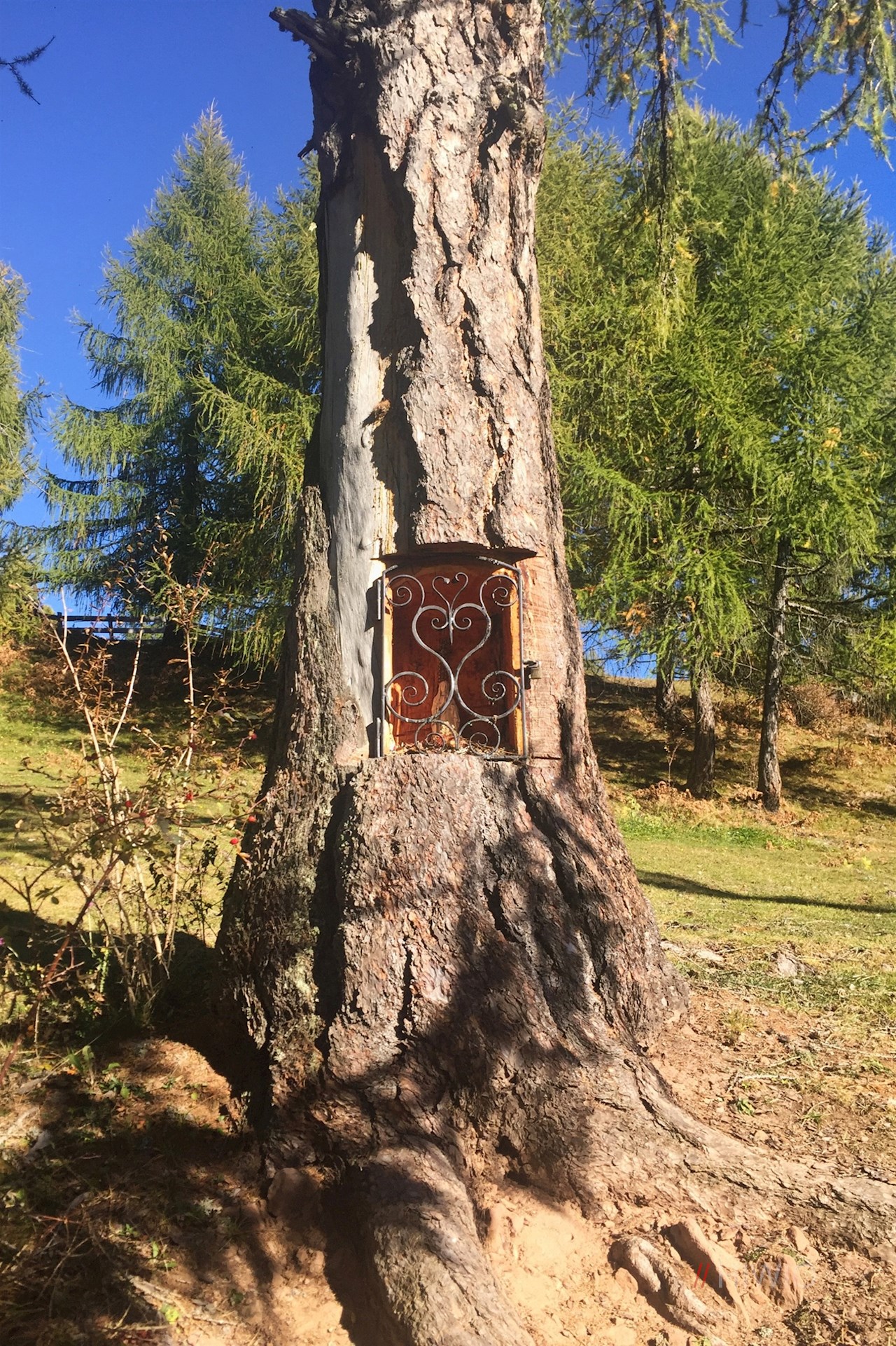 Dem asphaltierten, sanft ansteigenden Wanderweg Nr. 1 in Richtung Salten folgend, wandert man zunächst zum einladenden Gasthaus Edelweiß, hinter dem der Wanderweg Nr. 7 links abzweigt. Er schlängelt sich vor der malerischen Kulisse der umliegenden Bergwelt durch lichte Lärchenwiesen zum Biotop Tschaufen, dessen lauschiger Weiher nahezu vollständig von Schilf bedeckt ist.