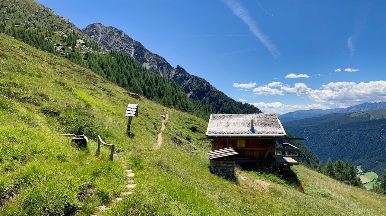 Direkt am Parkplatz zweigt der AVS-Jägersteig Nr. 15A in Richtung Tschiffernaun Alm ab. Er steigt zunächst steil durch lichte Lärchenhaine an, hinter denen sich weite, von einzelnen Bächlein durchflossene Bergwiesen ausdehnen. In ihnen gedeiht eine erstaunliche Vielfalt bunter Bergblumen, zu denen beispielsweise die Bartnelke, die Türkenbundlilie oder das Ferkelkraut zählen. Insbesondere aber überraschen sie mit einem malerischen Ausblick ins Valler Tal, auf die ringsum aufragende Pfunderer Bergwelt und die in der Ferne auftauchenden Dolomiten.