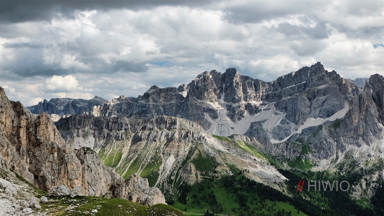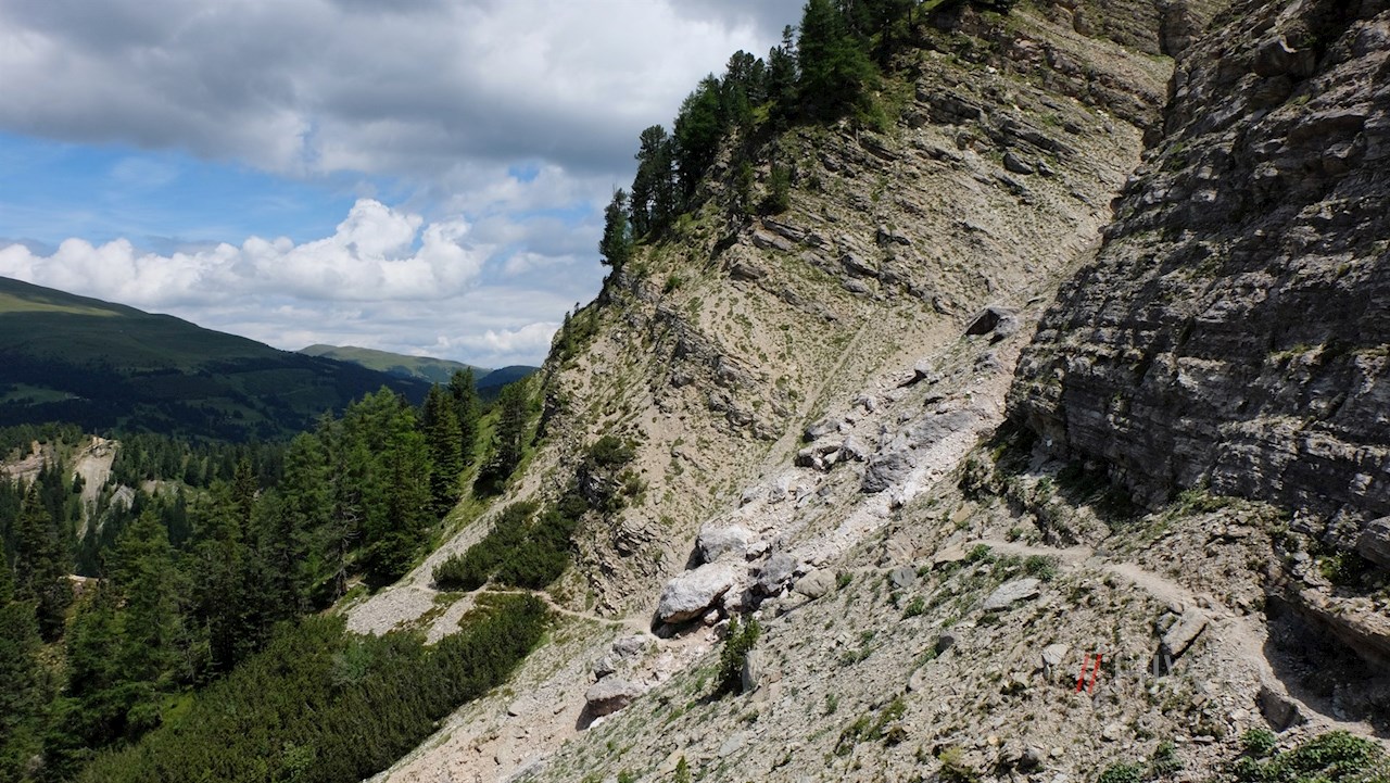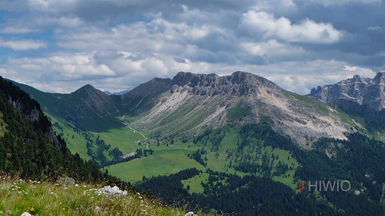 Hier folgt man dem mit GM markierten Günther-Messner-Steig in Richtung Kofelwiese. Er führt im steten Anstieg durch einen wurzelbeschlagenen Nadelwald, der dann und wann malerische Ausblicke auf die umliegende Bergwelt freigibt.