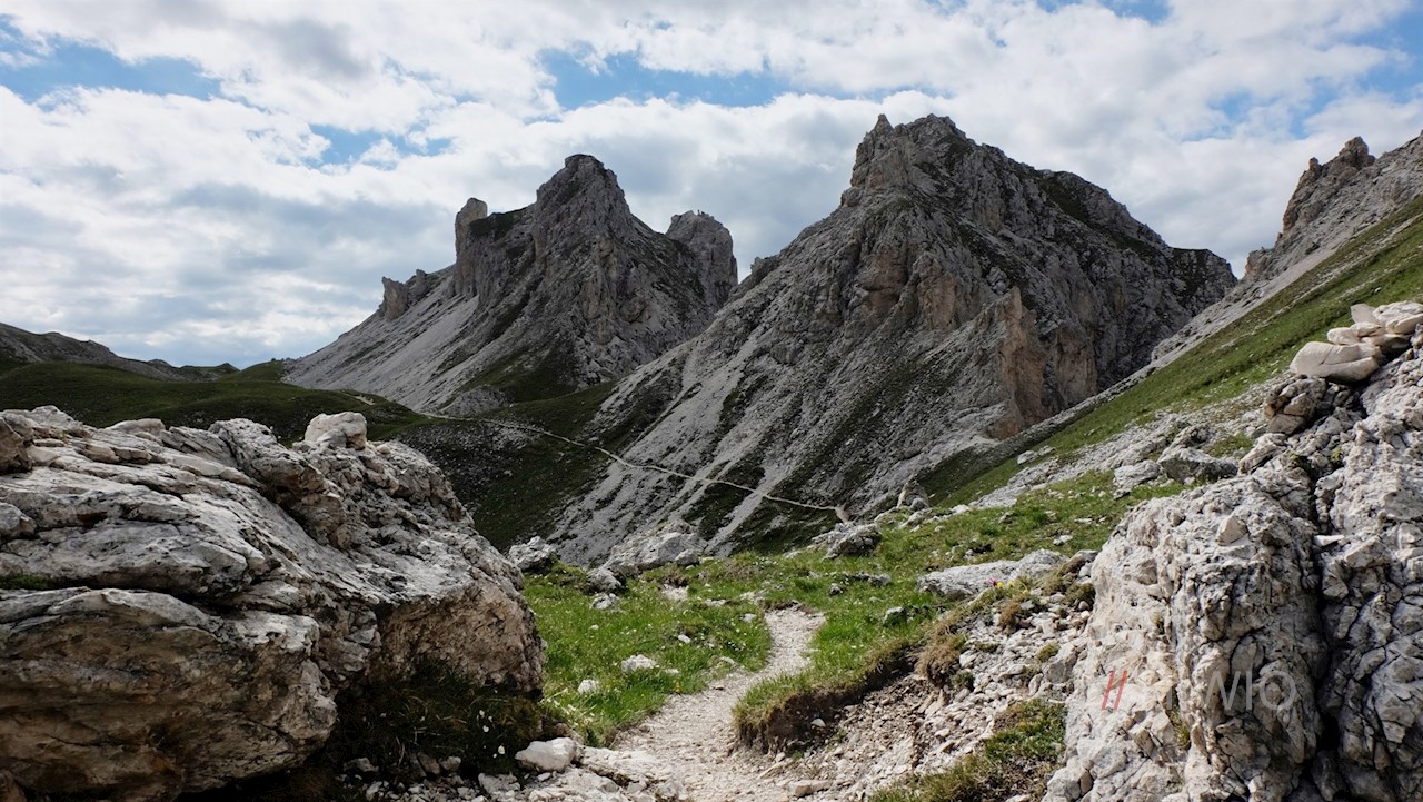 An der nächsten Weggabelung folgt man dem links abzweigenden Wegweiser in Richtung Tullen. Er führt im sanften Anstieg durch die blumenreichen Bergwiesen. Unterwegs erschließen sich verträumte Blicke auf die anmutigen Geislerspitzen und das tiefer liegende Villnöss.